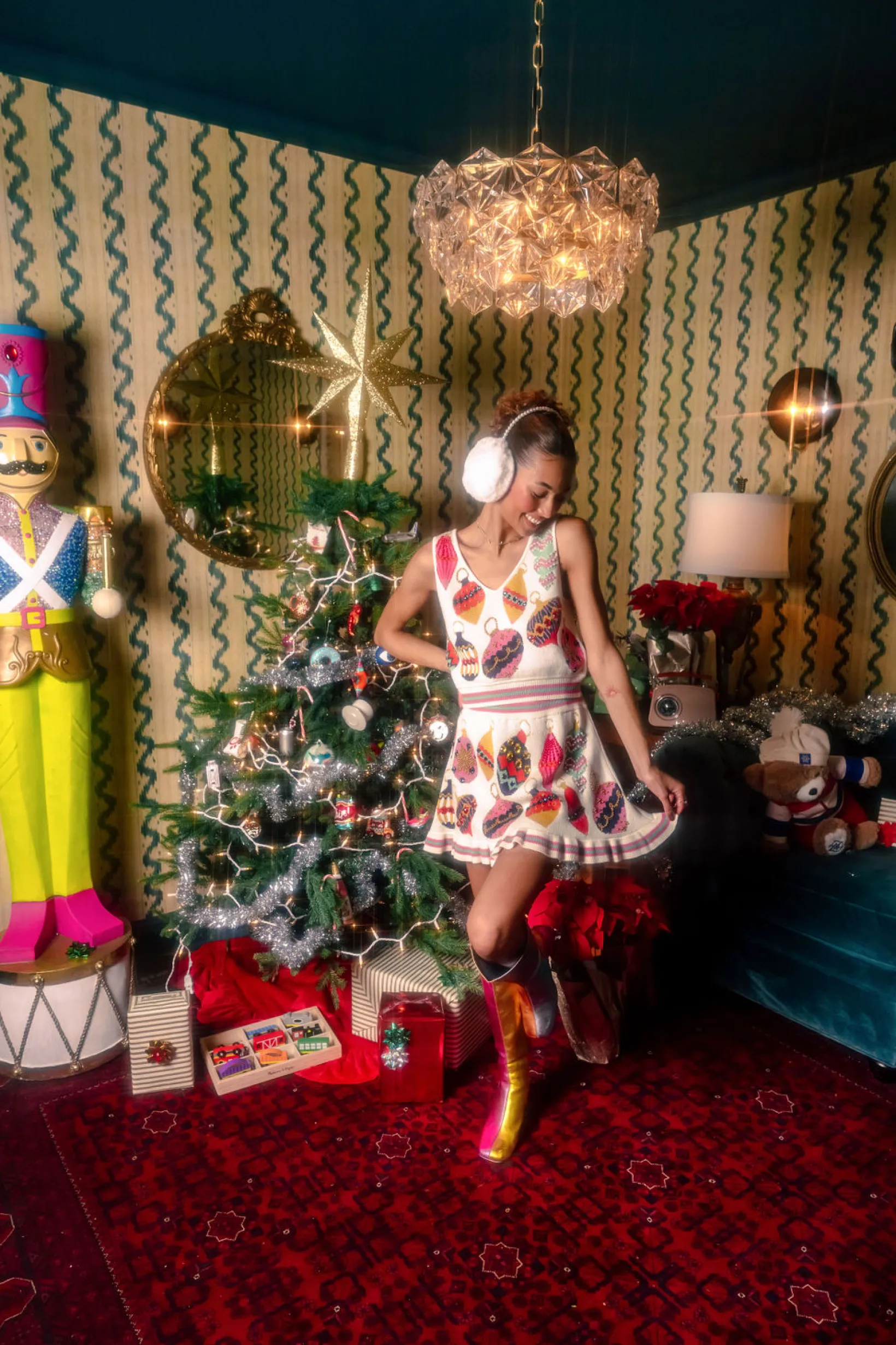 Beige Multi Ornament Knit Skirt