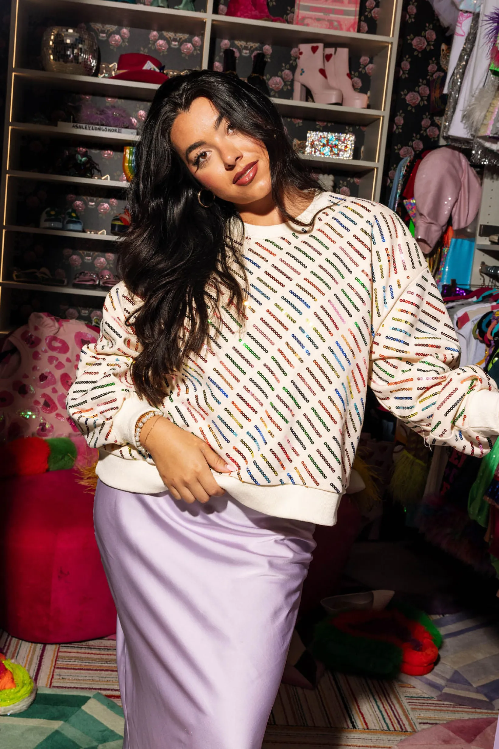 Meet our classic oversized sweatshirt, complete with balloon sleeves and a sequin stripe design. Bring some fun and flair to your style with this unique and eye-catching piece!🤎