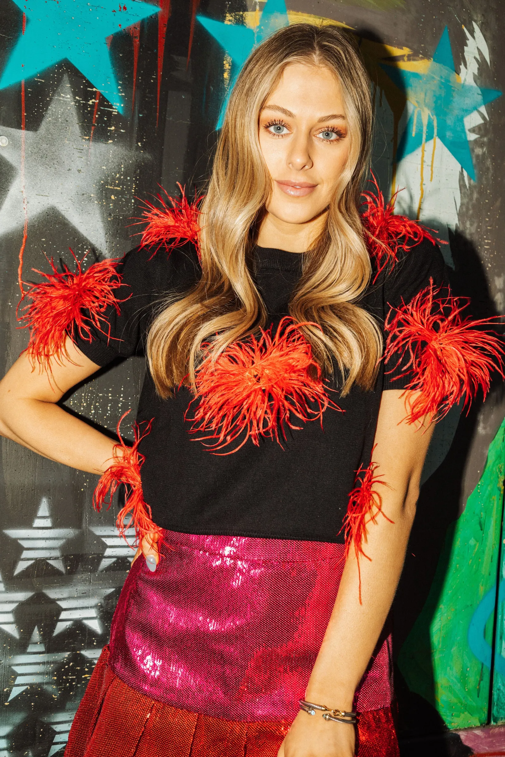 Black with Red Feather Sweater