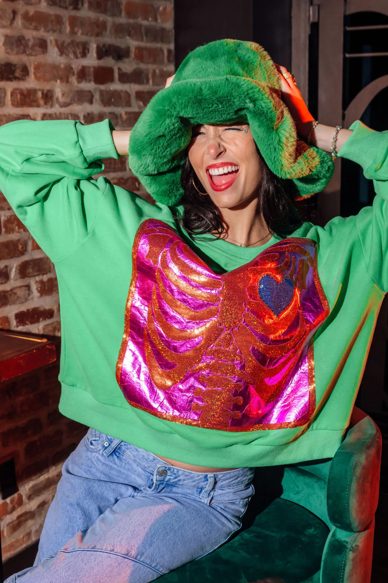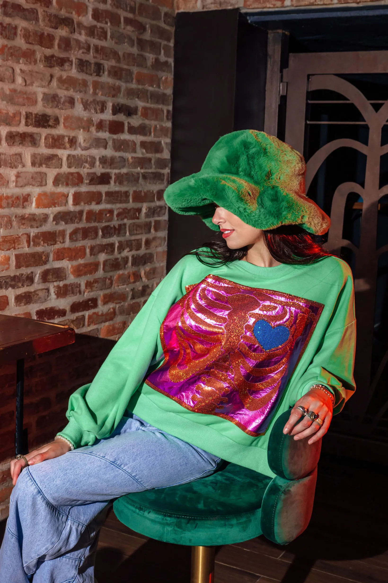 Add some fun to your wardrobe with our Green X Ray Heart Sweatshirt!