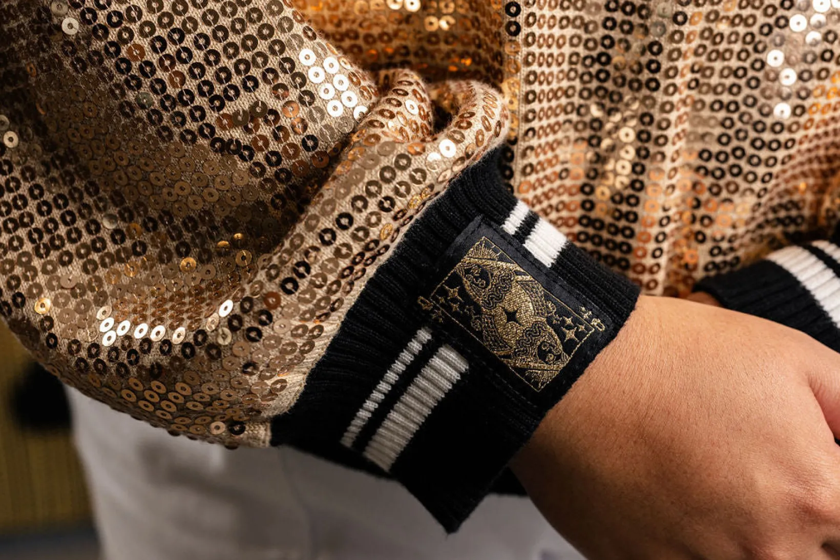 Get ready to dazzle in this LICENSED Gold Full Sequin Fleur De Lis Sweater! With shiny sequins covering every inch, you’ll stand out in any crowd. Plus, the iconic Fleur De Lis design adds an elegant touch. Stay stylish and show off your love for fashion in this unique sweater.