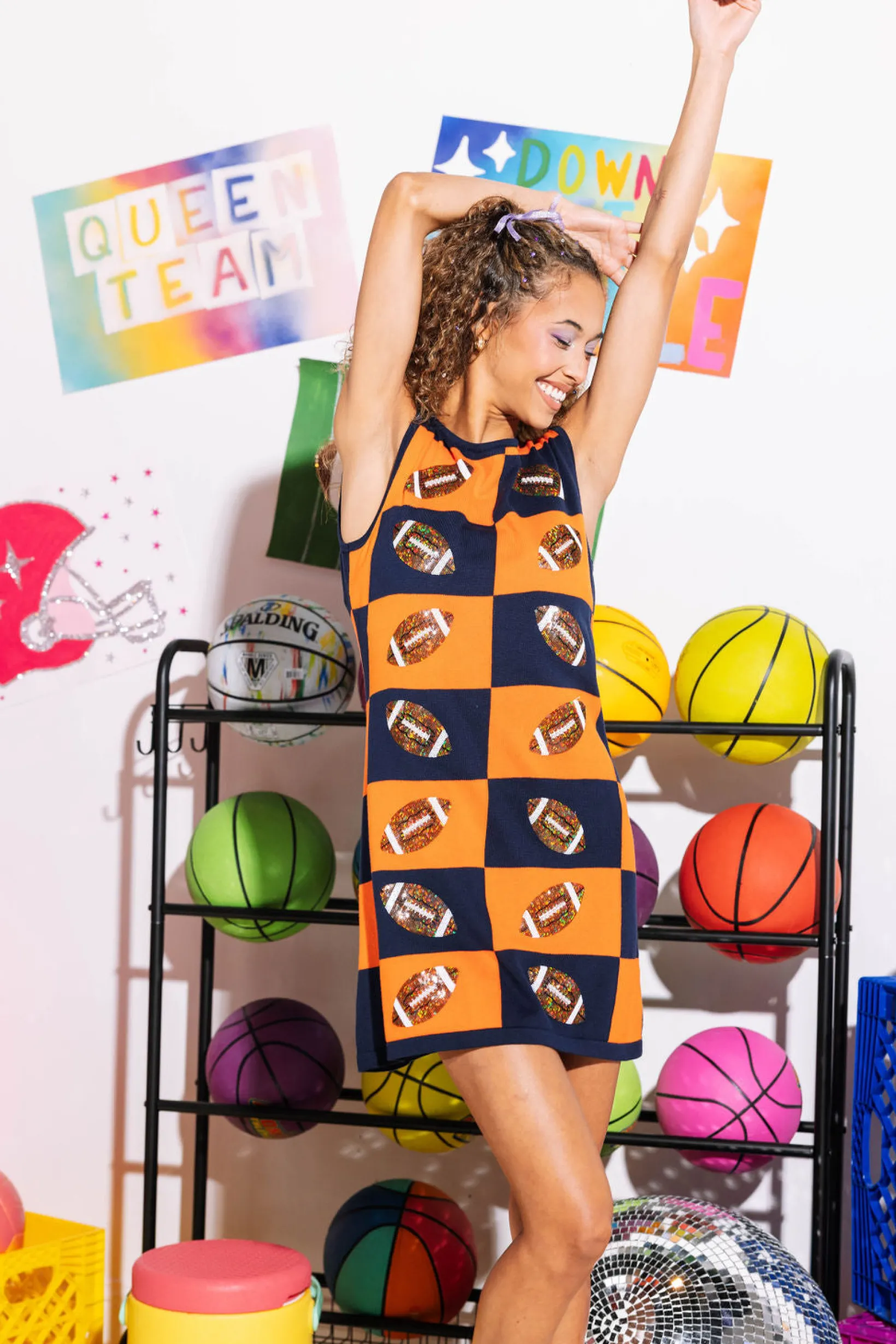 Score a touchdown in style with our Navy & Orange Football Checkered Dress. This fitted but stretchable tank dress is the perfect addition to your wardrobe. Get ready to shine with a touch of sparkle and complete your look with this open back feature! 🏈