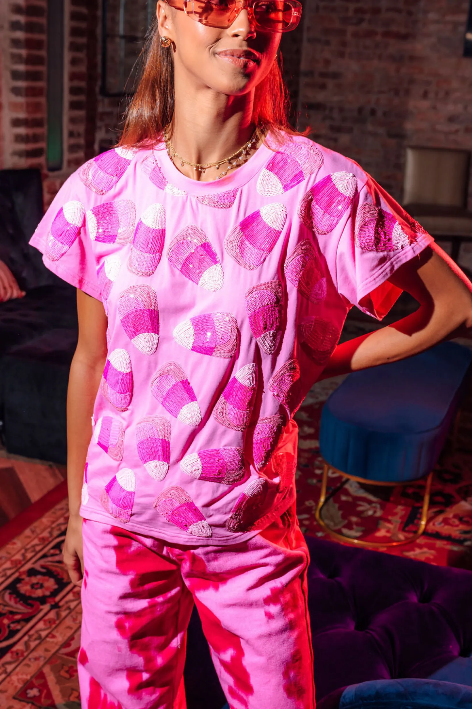 Get ready to embrace spooky season with our Neon Pink Candy Corn Tee! This playful t-shirt pays homage to the beloved Halloween candy, adding a unique twist to your wardrobe.