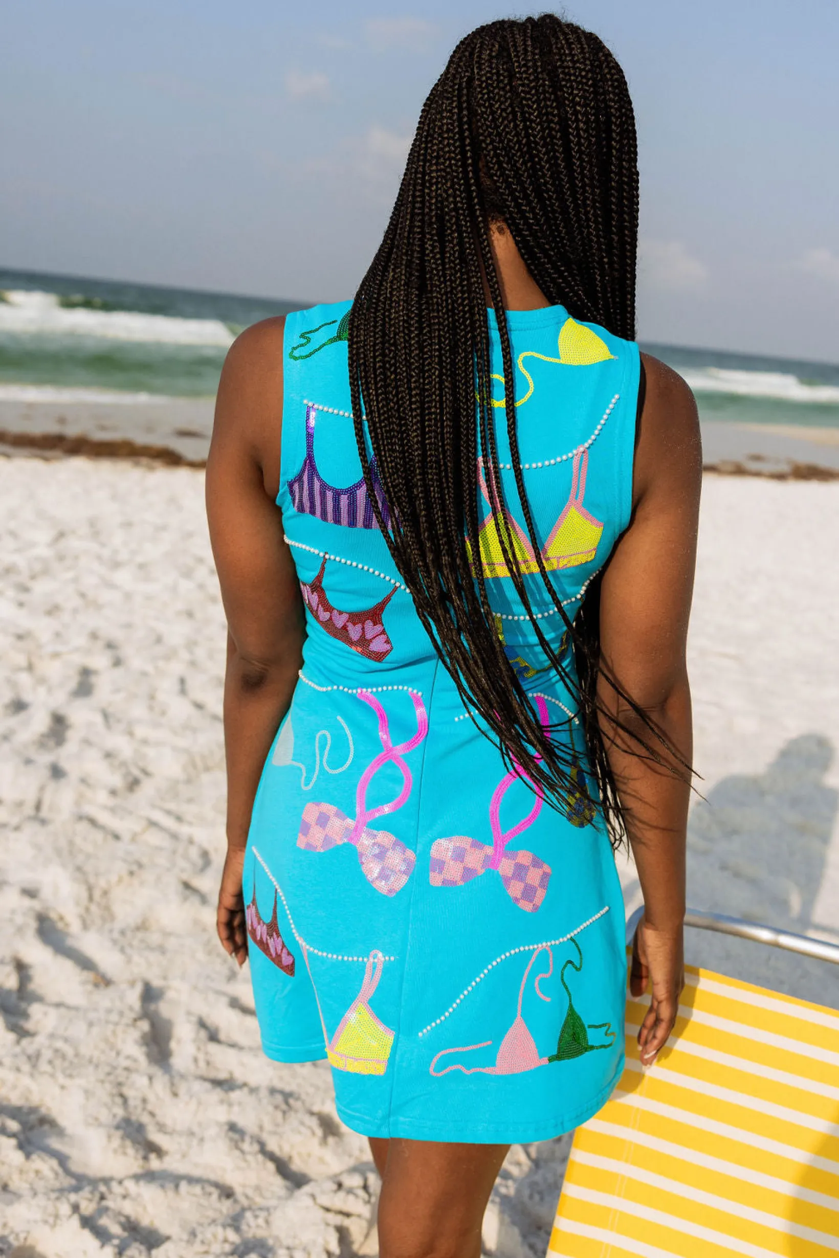 You’re never fully dressed without a sparkle ✨ Our tank dress is light-weight and loose fitting, complete with a hanging bathing suit design and pearl detailing. (Slay the summer game!)👙🏖️