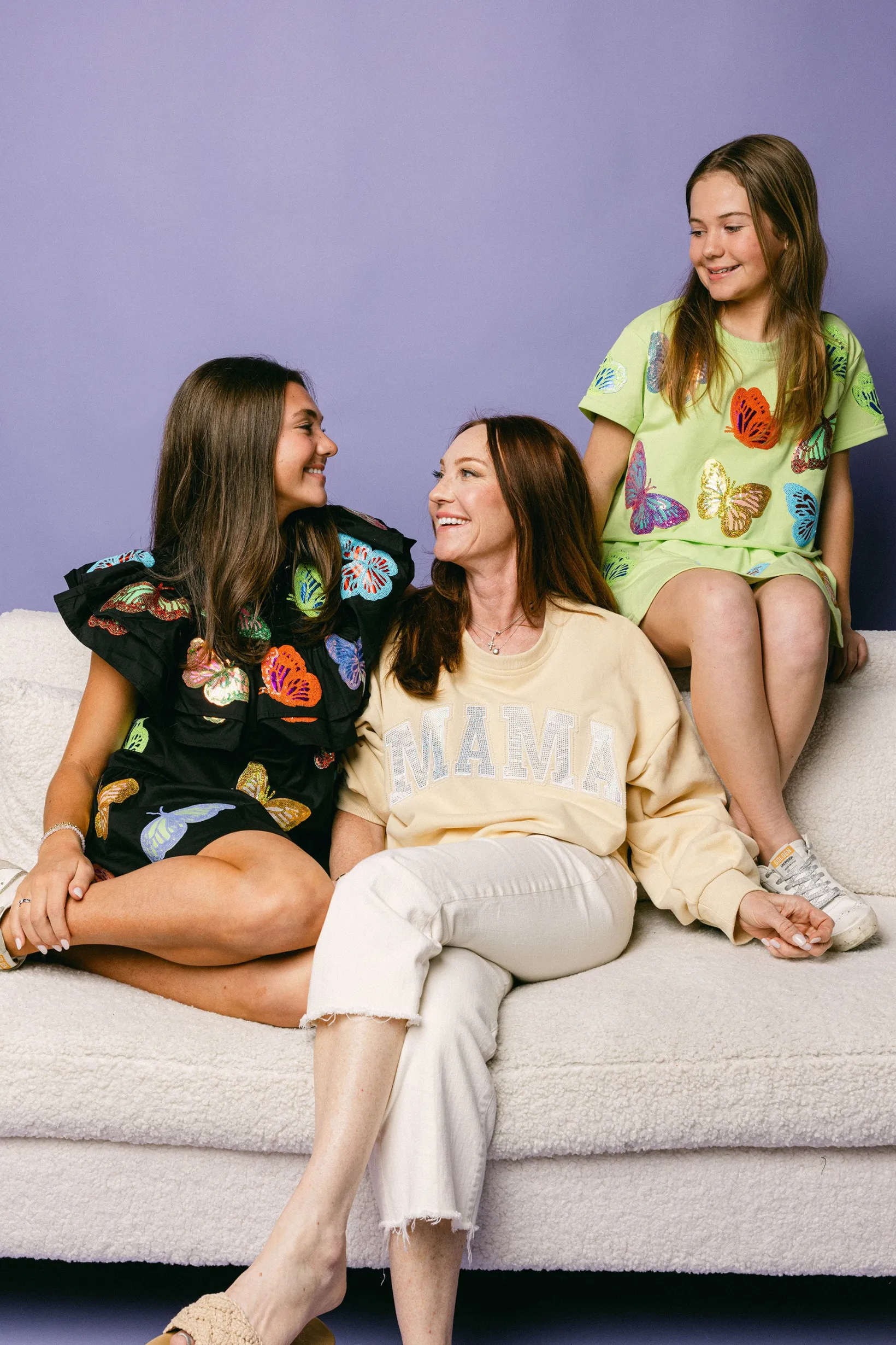 Celebrate motherhood in style! Our classic sweatshirt with a boho twist, this long sleeve top features a balloon sleeve with an extra roomy fit. Complete with a rhinestone “MAMA” design. Wear it with pride, and let everyone know that you are one cool mama!🍼✨