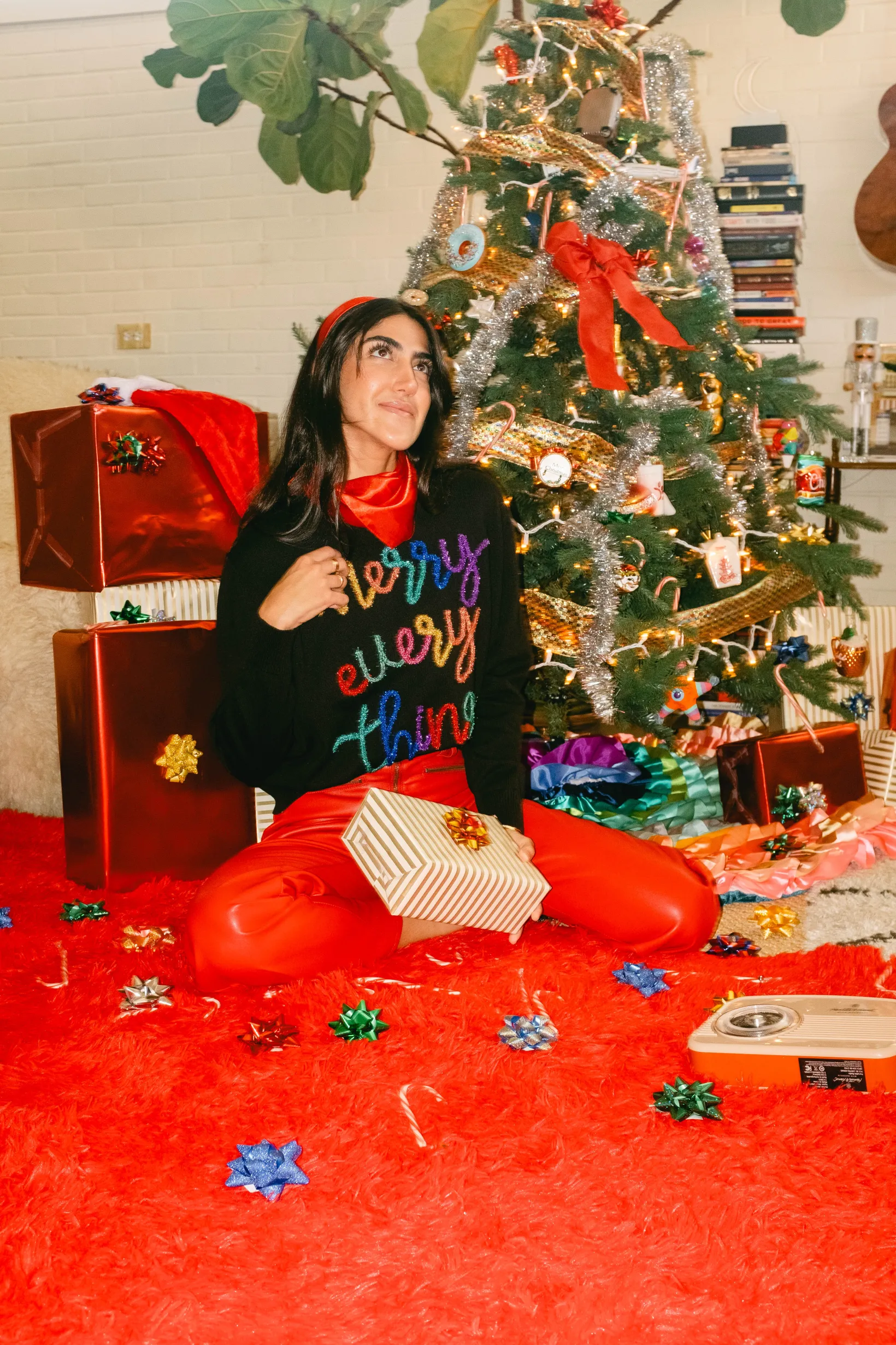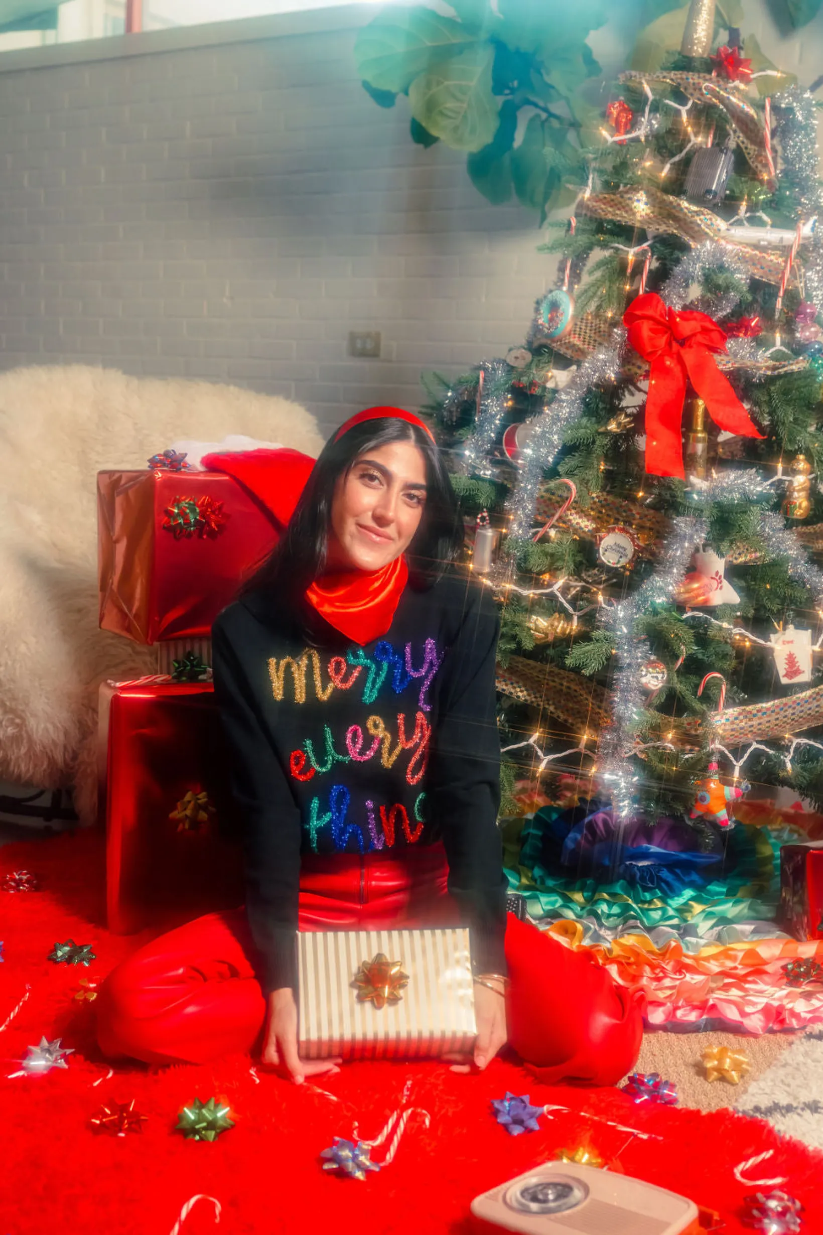 This Black Merry Everything Glitter Script Sweater is perfect for a festive look! It features our infamous glitter script with a “Merry Everything” design, a slightly cropped and loose fit for a comfortable yet stylish feel. You’ll be sure to sparkle this season!