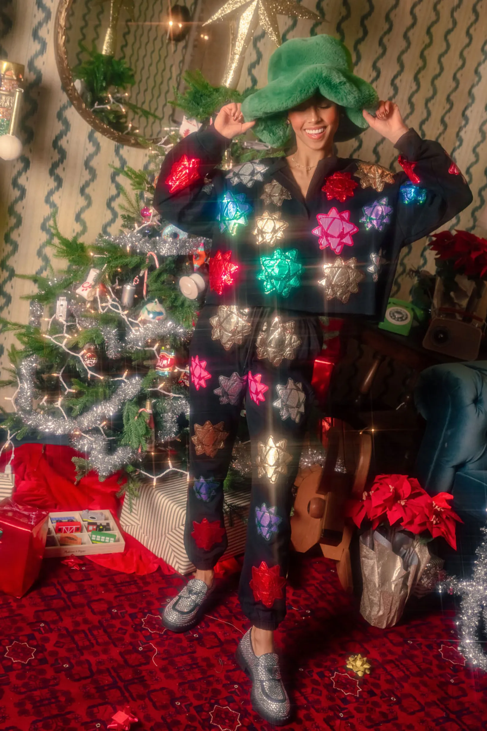 Be the first to review “Black Metallic Present Bows Cropped Sweatshirt” Cancel reply