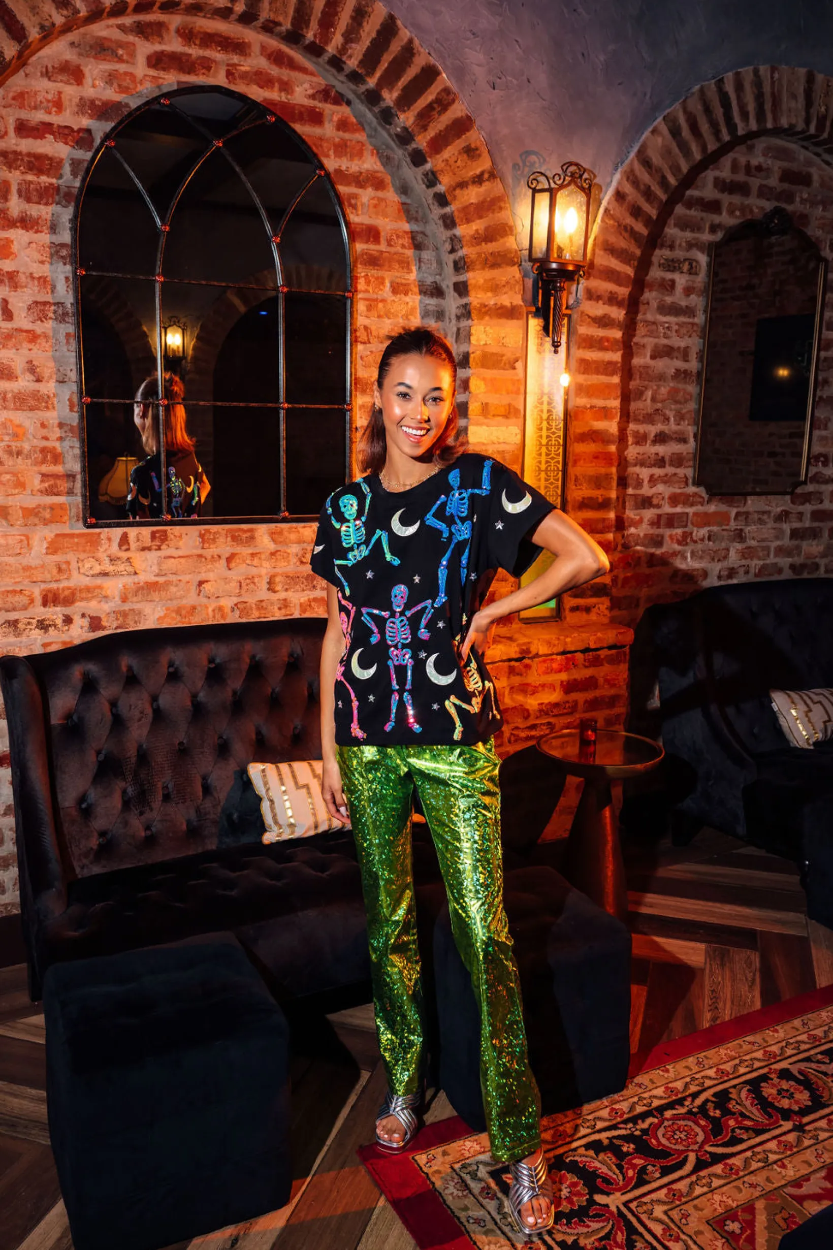 Get ready to dance the night away with this funky and playful tee featuring dancing skeletons! Get into the spirit of the season and stand out from the crowd with this unique tee.