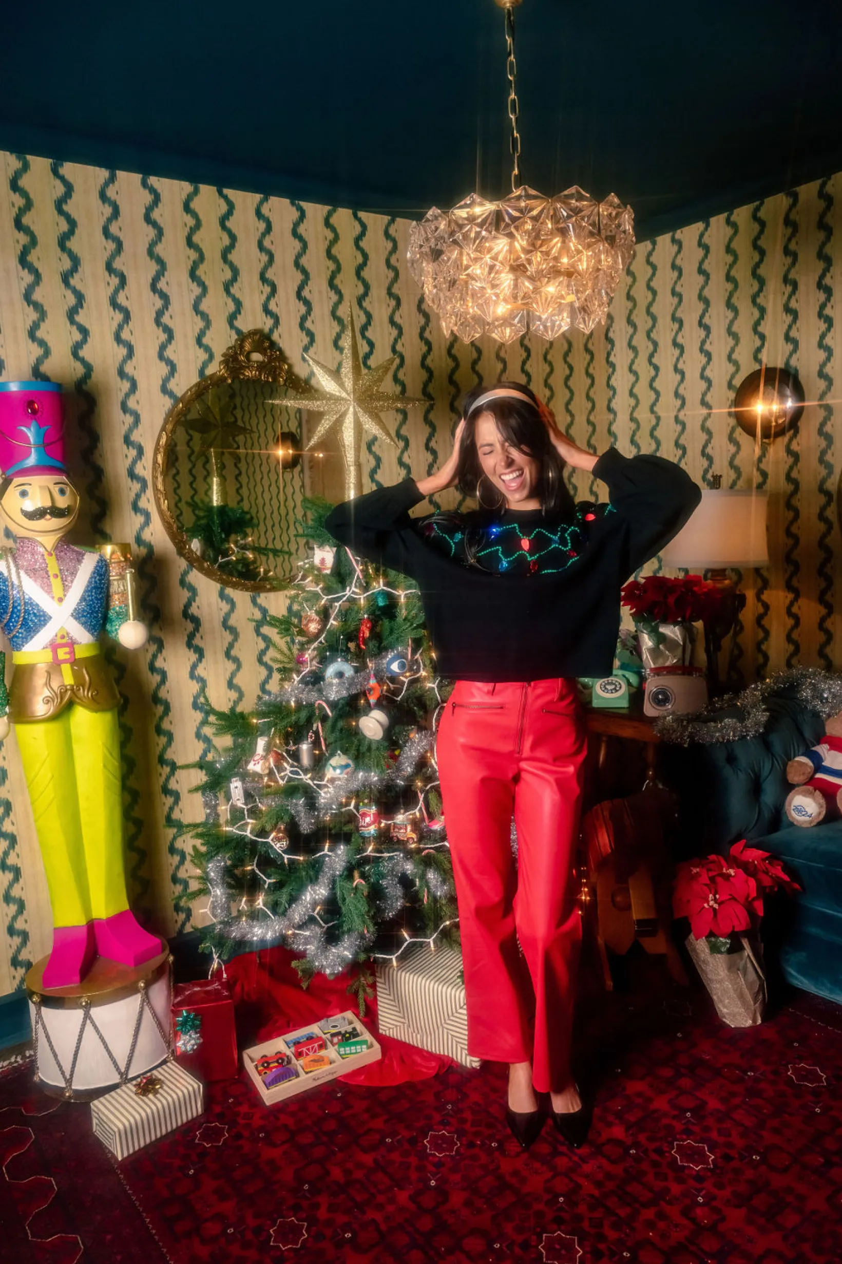 Black Multi Pearl & Jewel Christmas Light Sweater