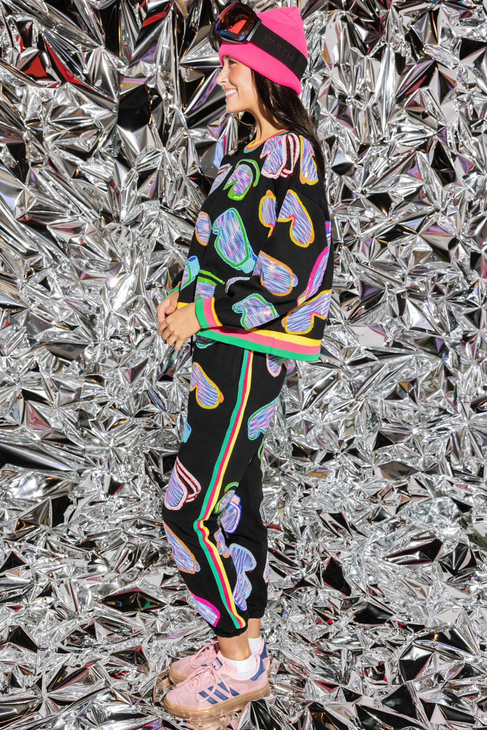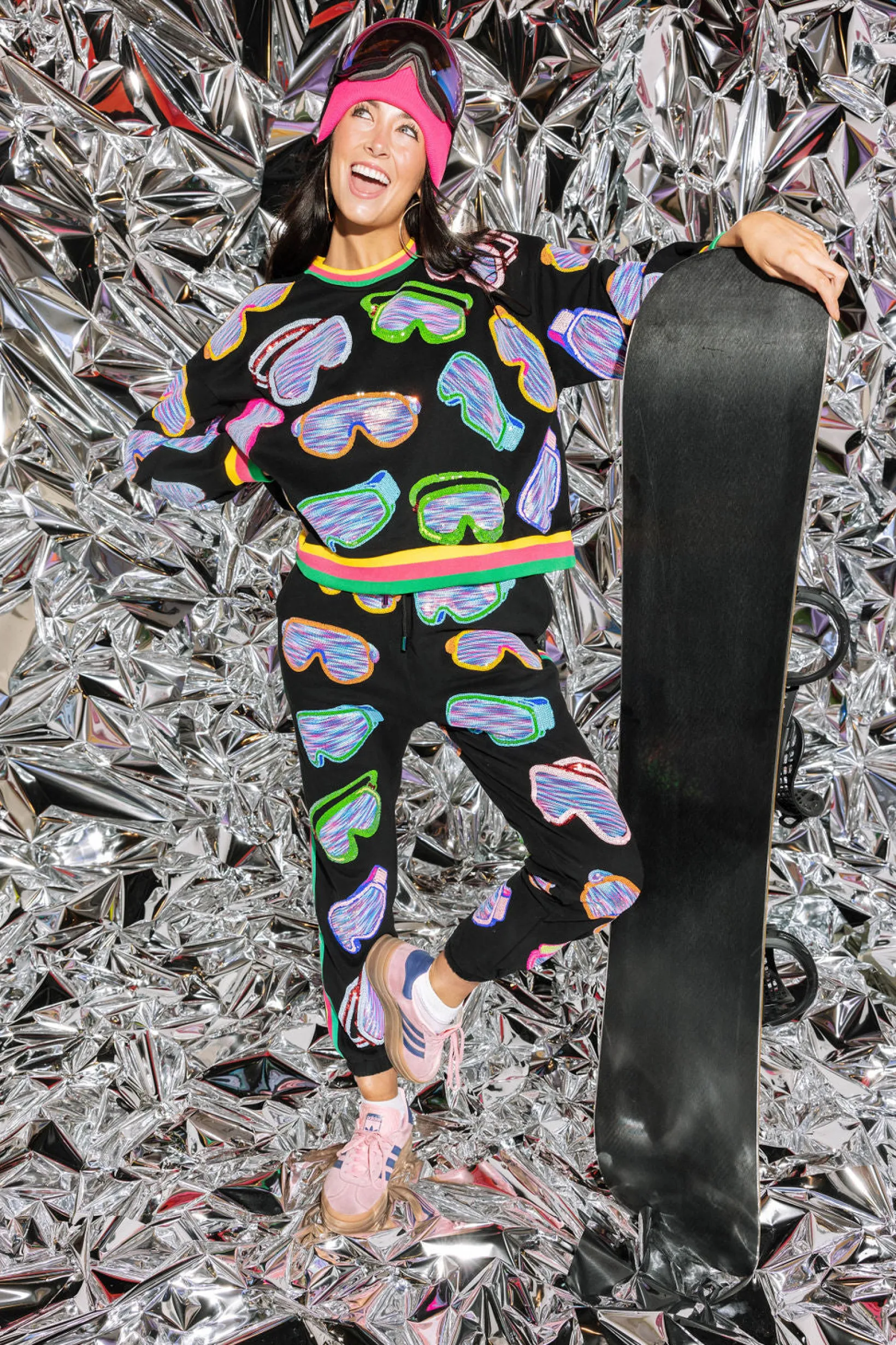 Black Multi Ski Goggle Sport Stripe Sweatshirt