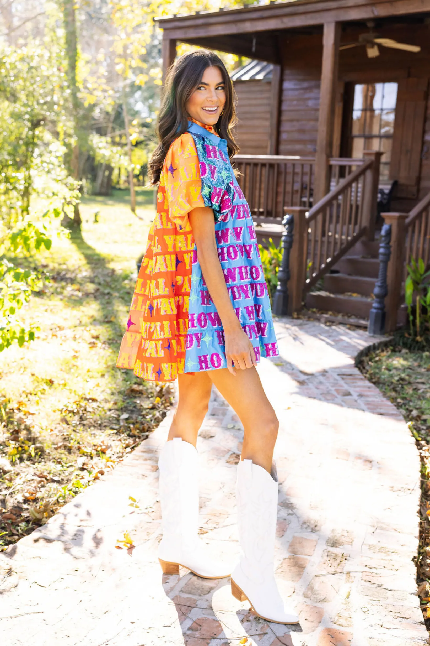 Blue & Orange Sequin Sleeve Howdy Tiered Dress