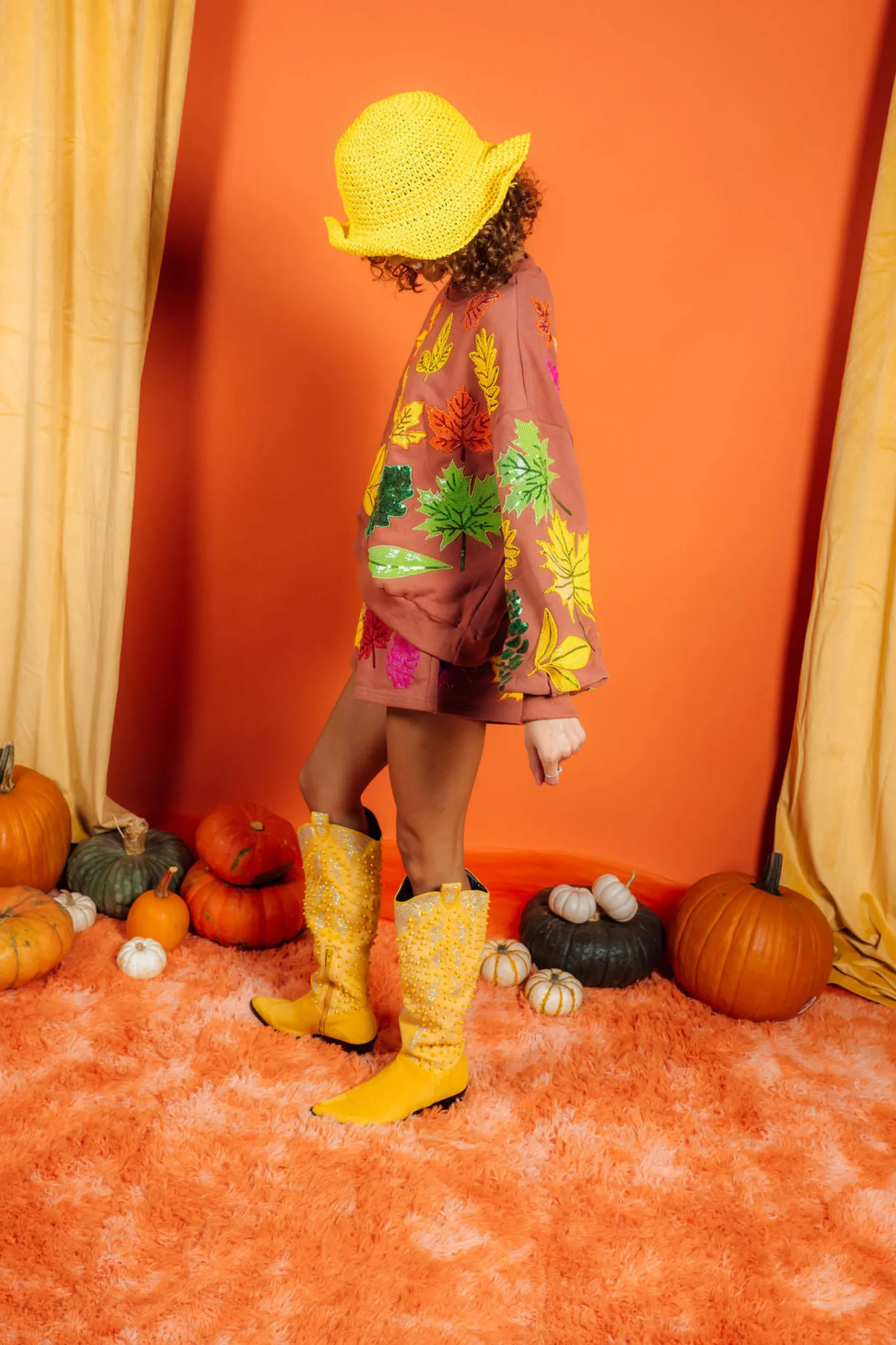 Get ready for the fall season with our Brown Fall Leaves Sweatshirt! This sweatshirt not only keeps you warm, but also gives you the perfect fall look. Pair it with our matching shorts for a complete and stylish outfit. Don’t miss out on this cozy must-have! (Autumn vibes included)