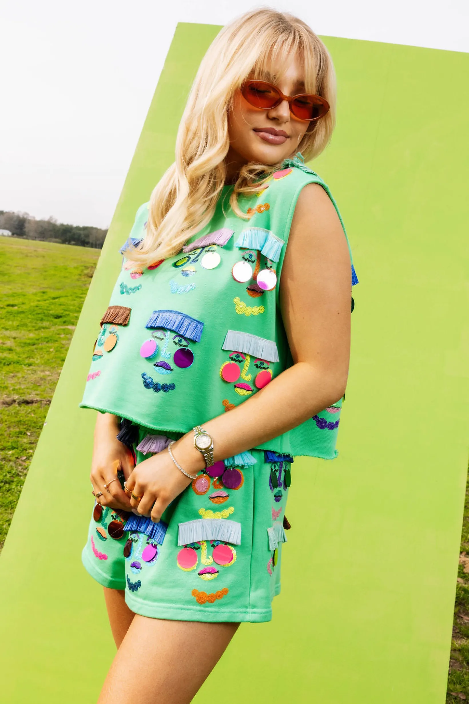 Green Fringe Face Tank
