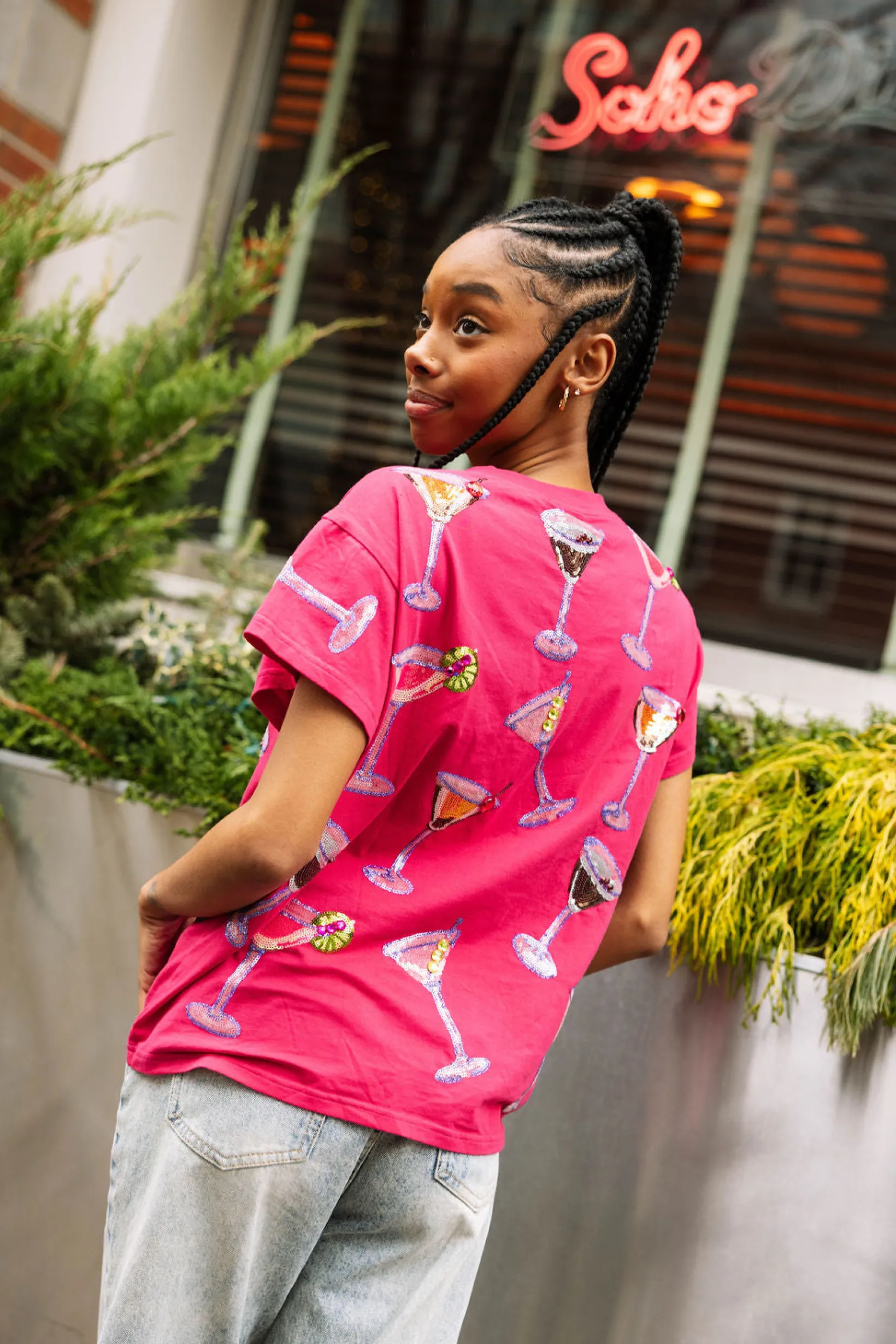 This tee is perfect for a girls night out with its hot pink color and playful reference to the iconic cocktail. Stay stylish and fun while raising a glass with your friends. Cheers to a great night!