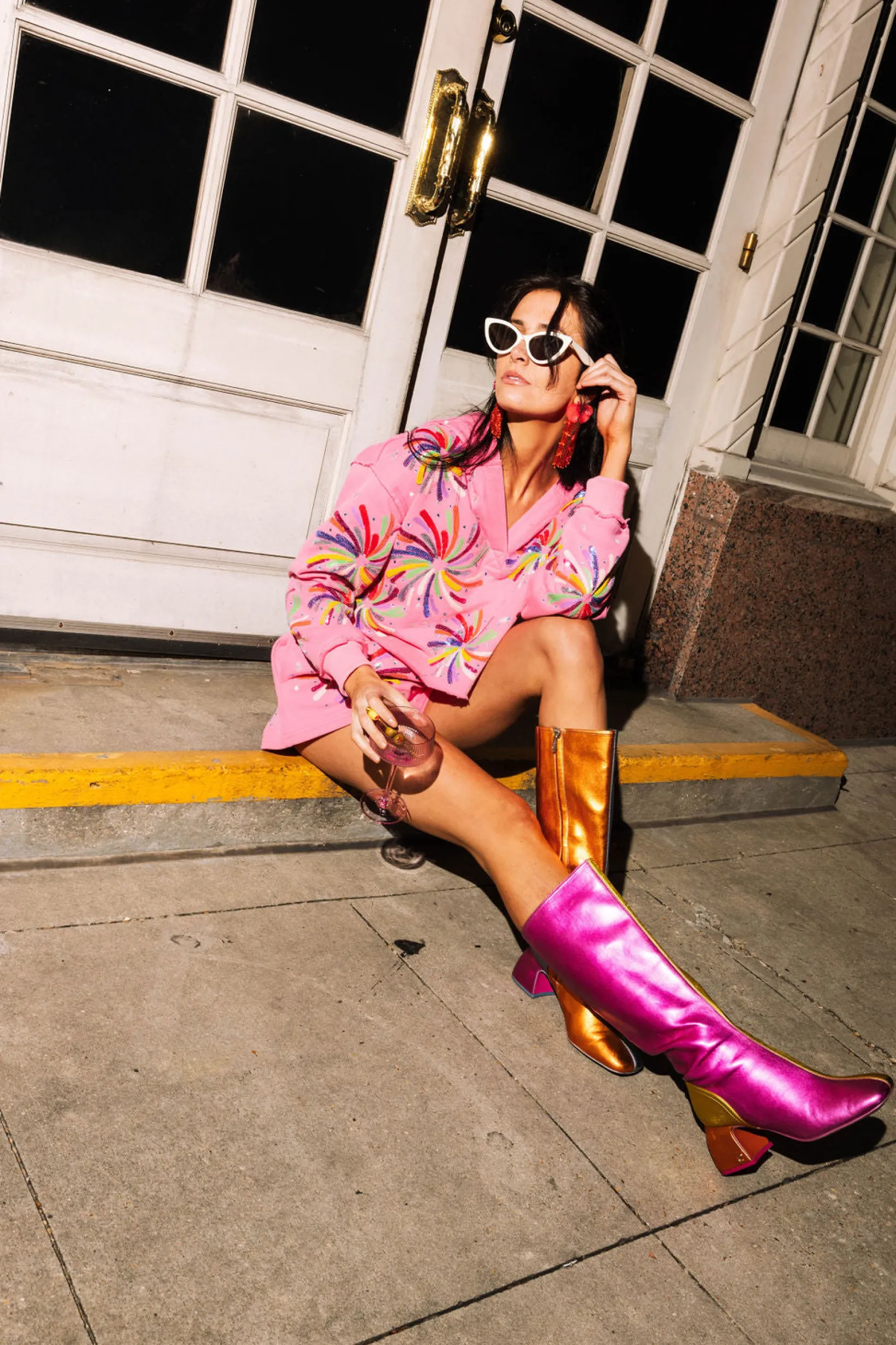 Hot Pink Multi Firework Hoody Sweatshirt