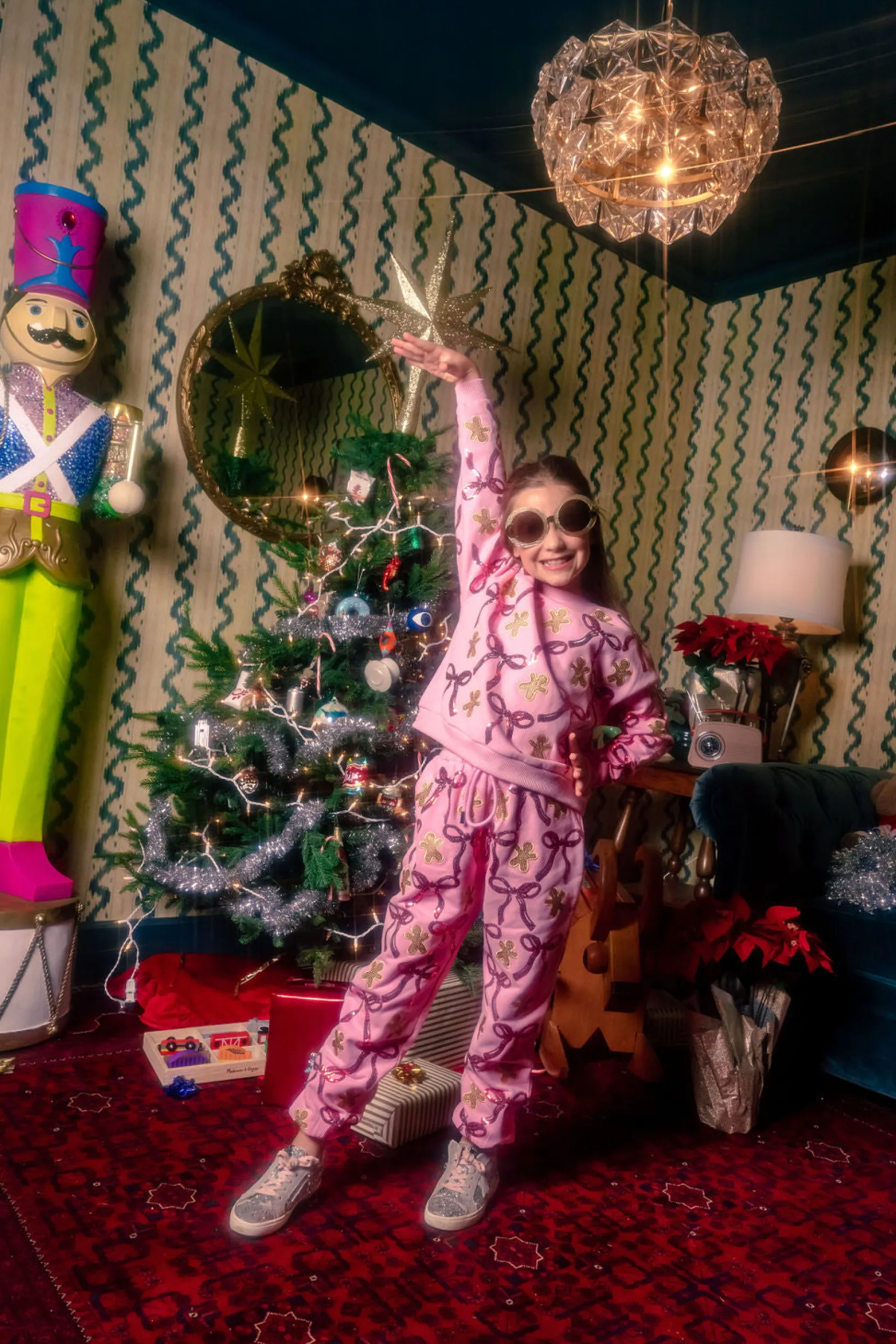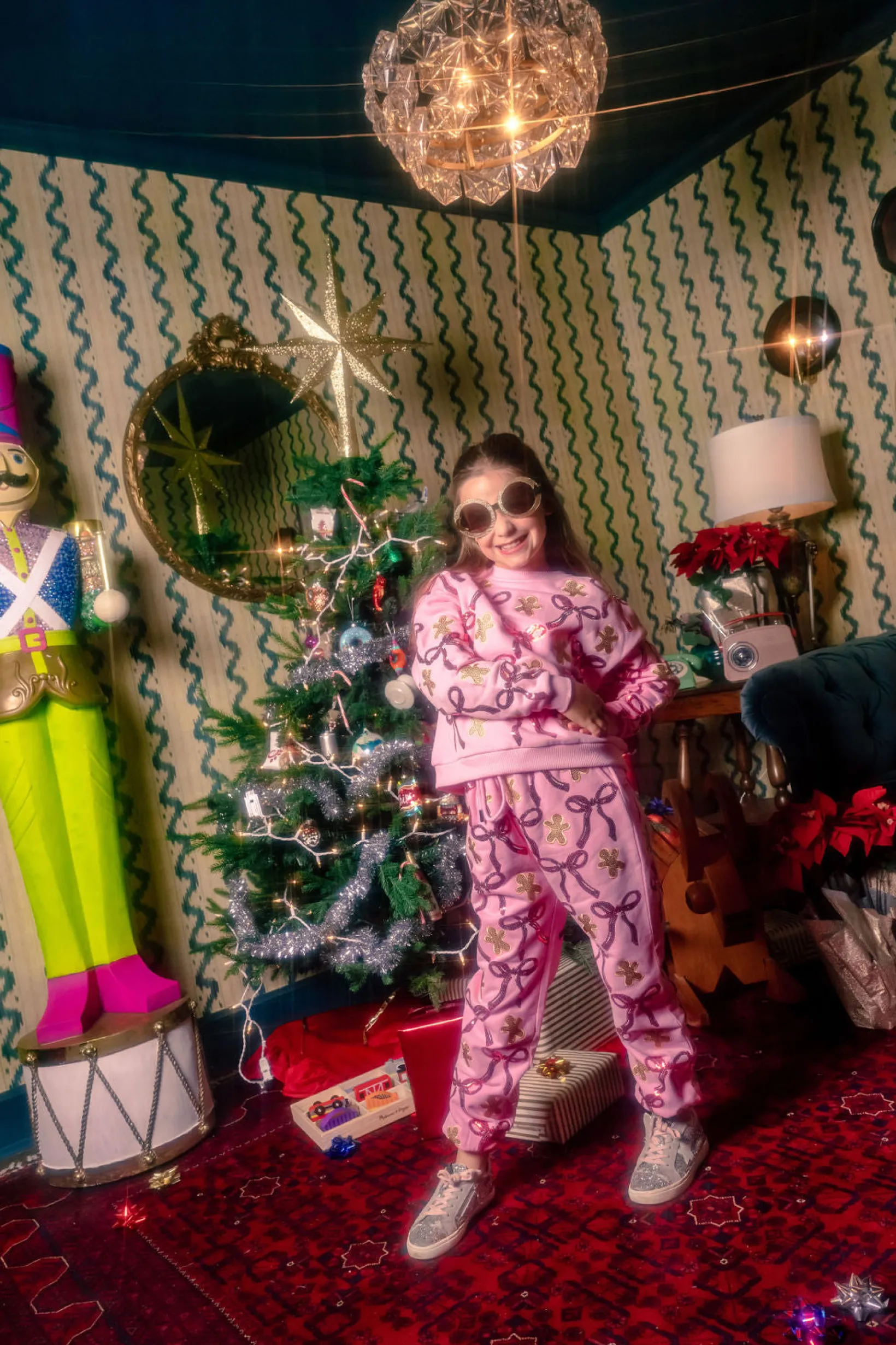 Kids Light Pink Gingerbread Men & Bows Jogger