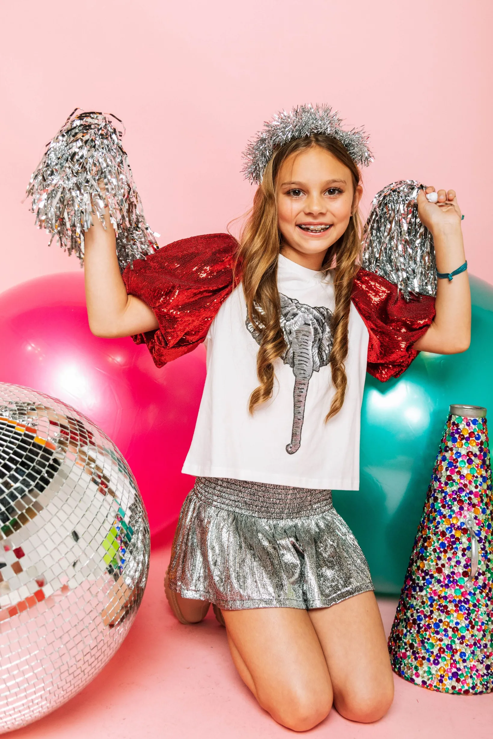 Kids Red Sequin Poof Sleeve Elephant Tee