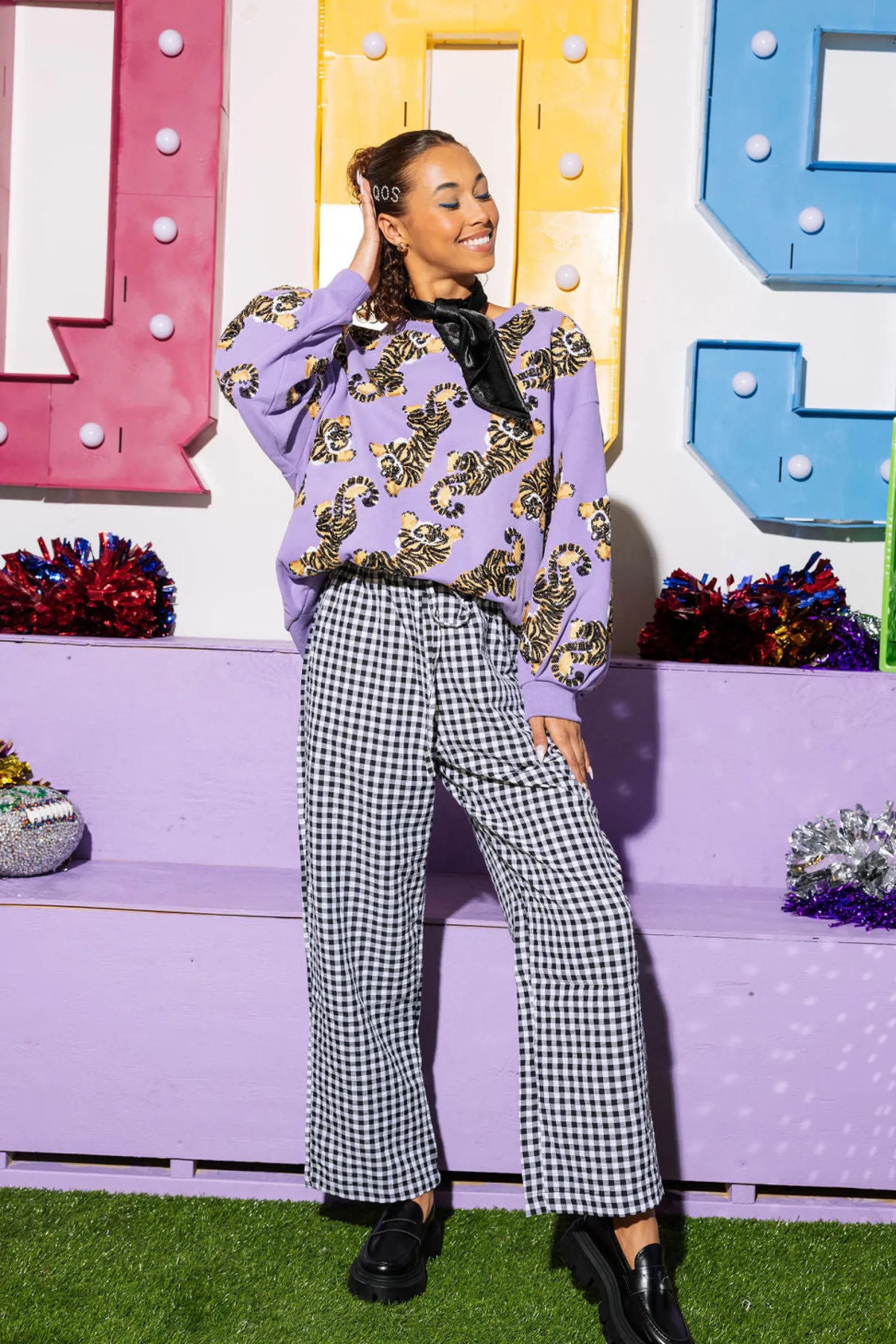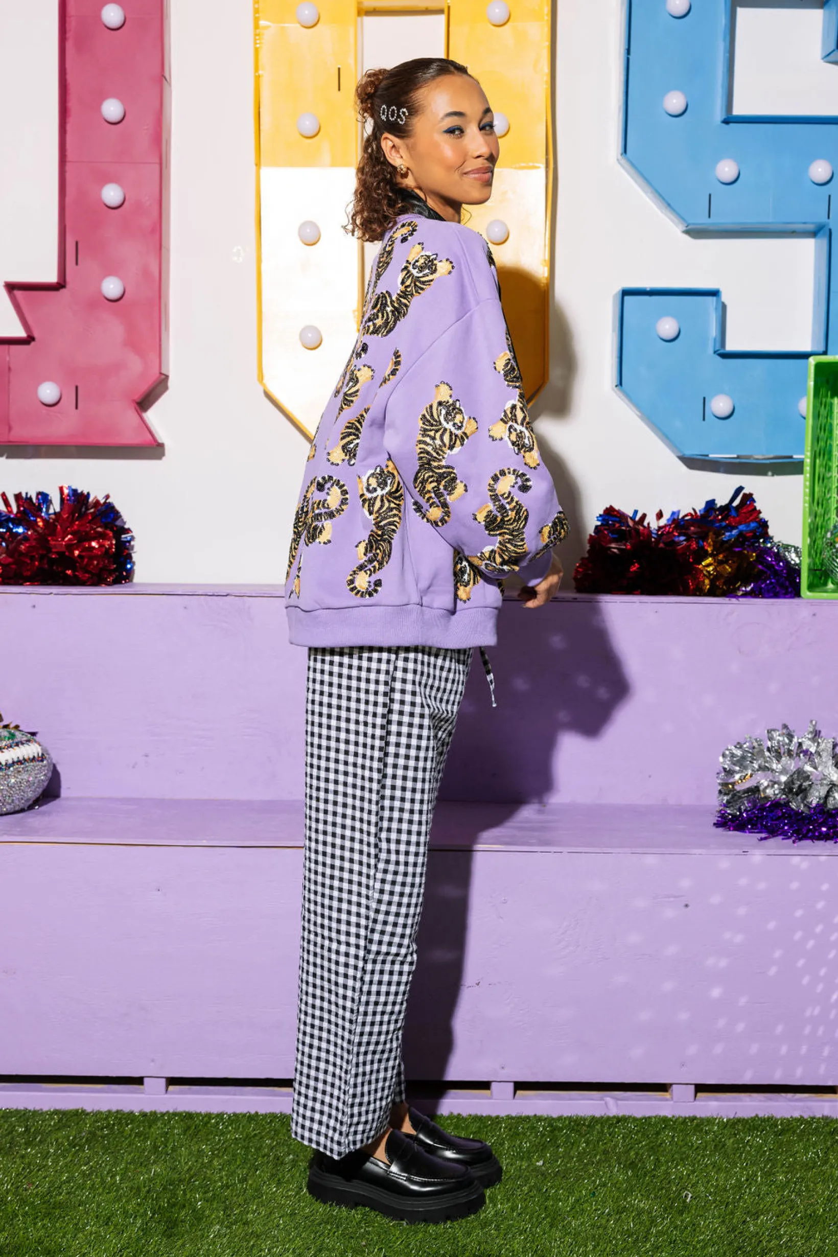 Roar with fashion and team pride in our Lavender Scattered Full Tiger Sweatshirt. Stand out at games or on the streets with this stylish and cozy sweatshirt while rooting for your team.