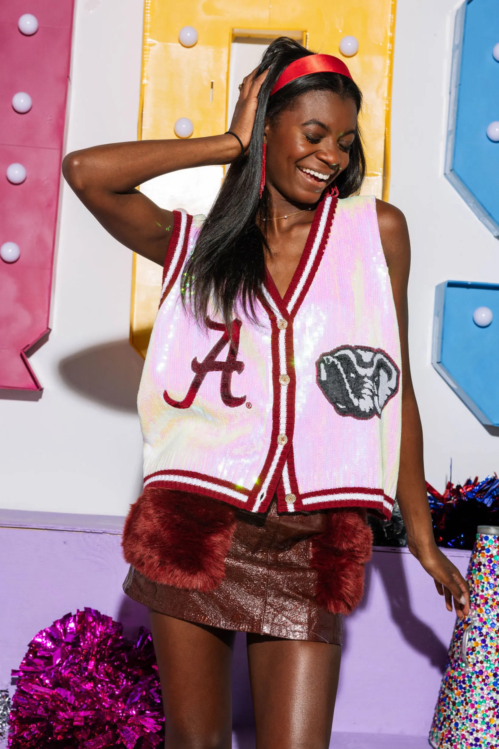 Get ready to “sparkle” and support your team with our eye-catching Full Sequin Sweater Vest! Featuring a playful design this vest is sure to dazzle and add some fun to your game day outfit. Show off your team spirit in style!