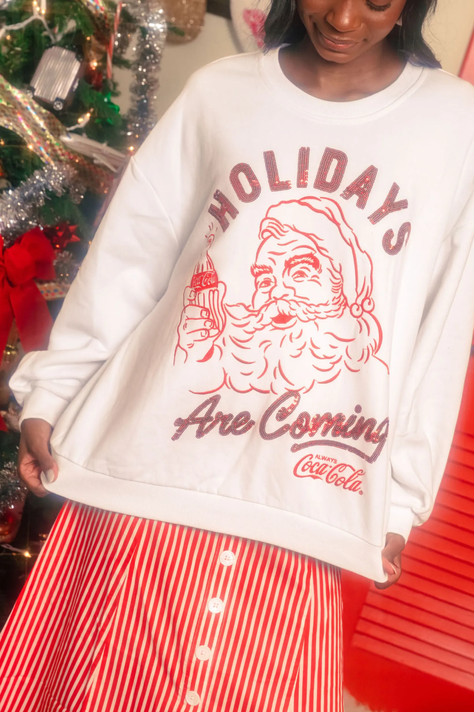 Licensed- White & Red ‘Holidays Are Coming’ Santa Coca-Cola Sweatshirt
