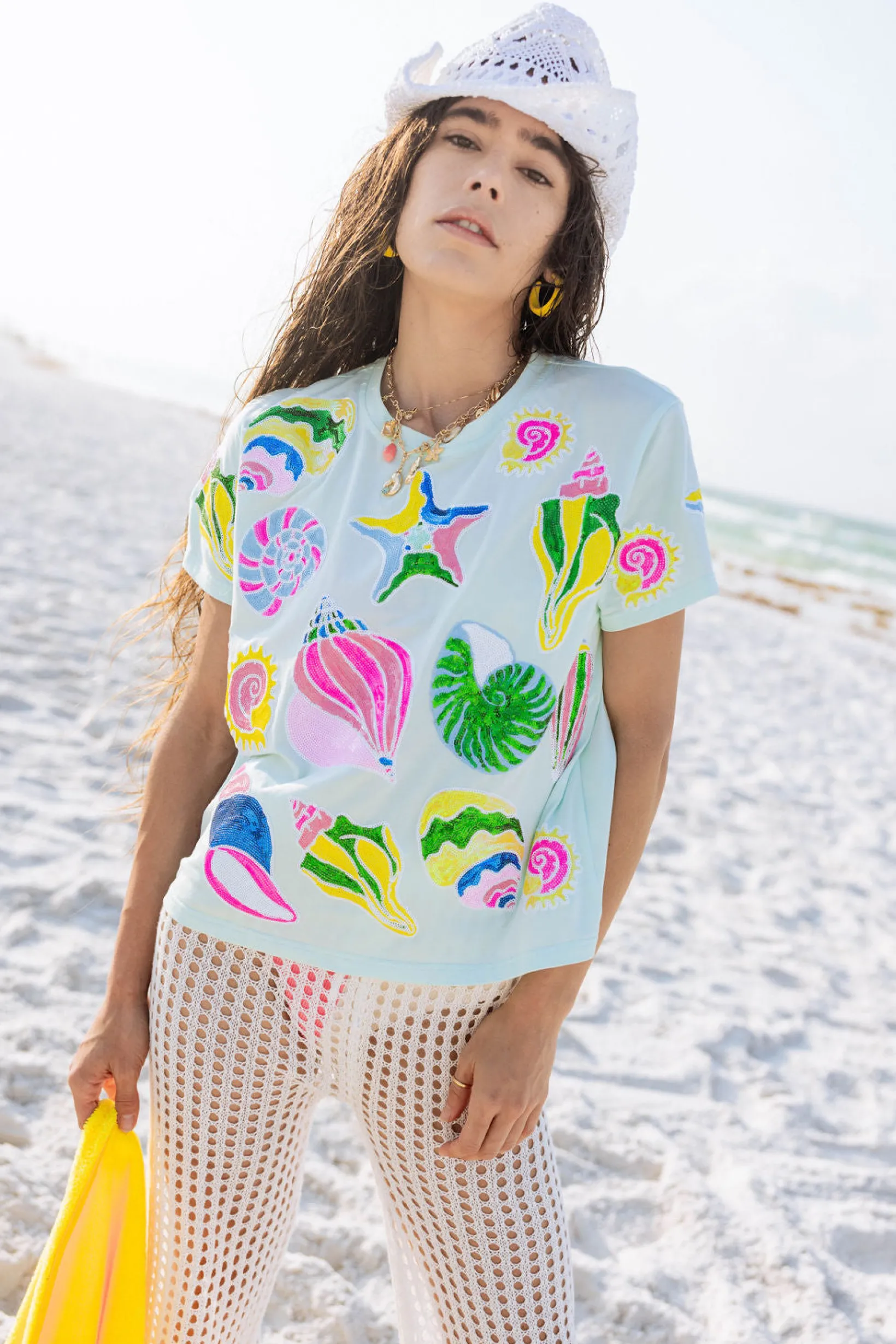 This tee brings the ocean to your wardrobe! Meet our classic tee, complete with a sequin shell design. 🐚🐳