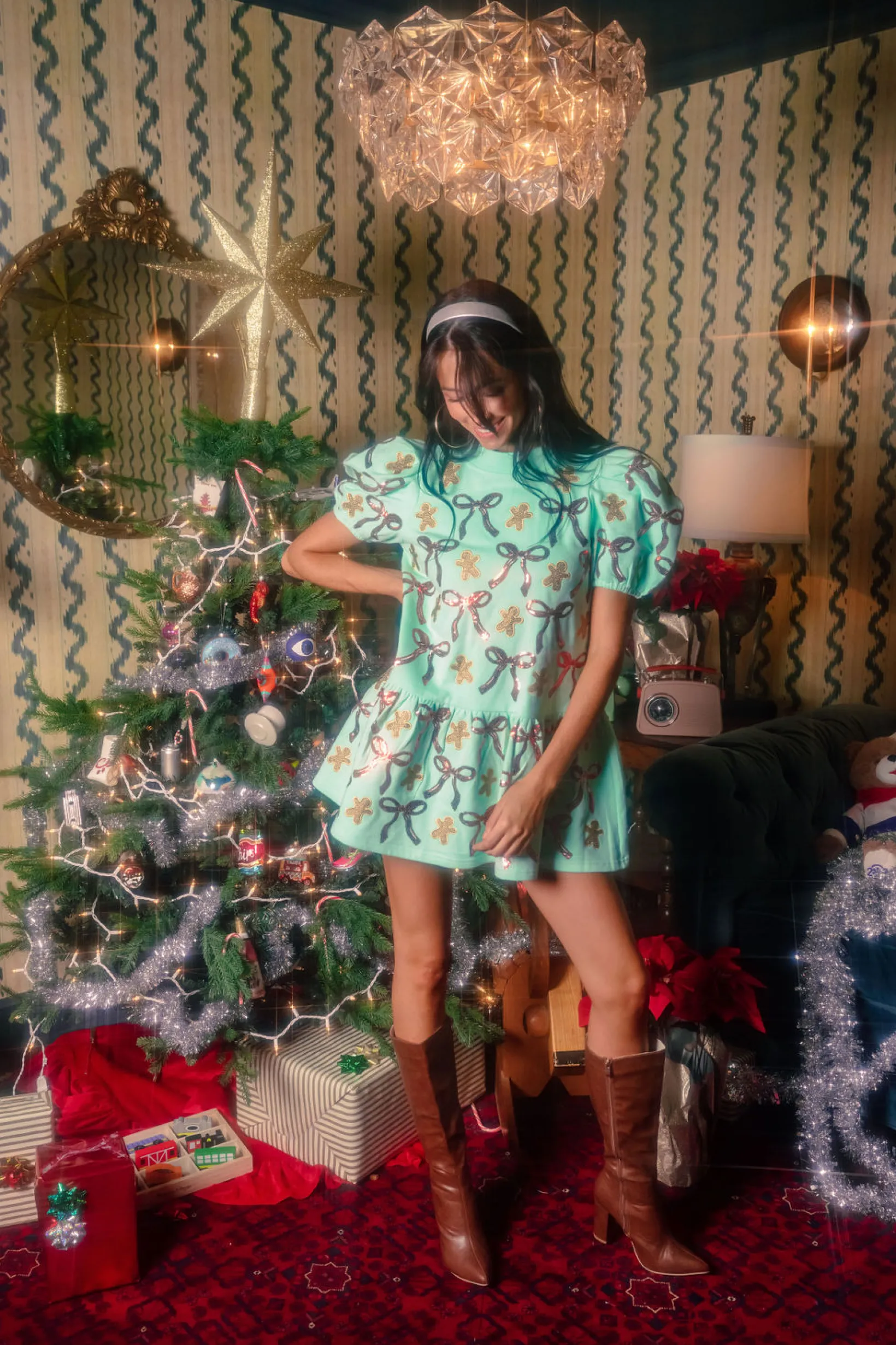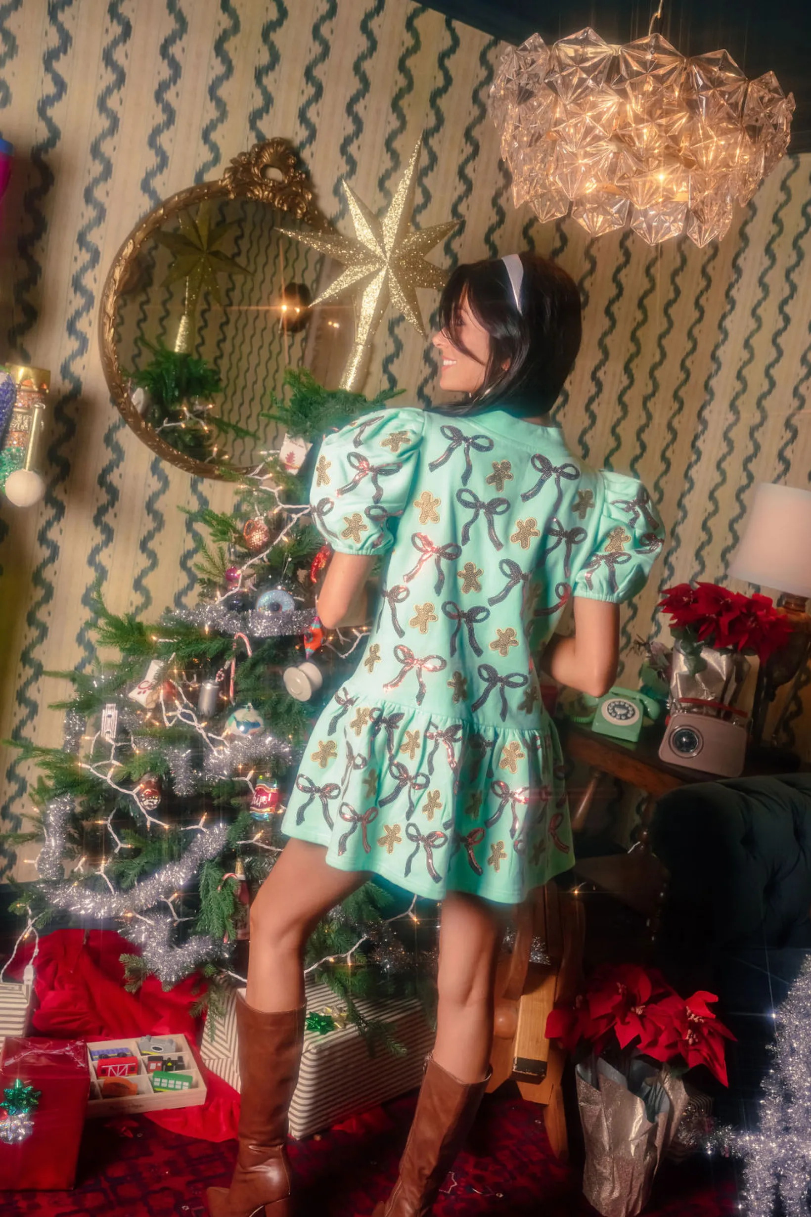 Mint Green Gingerbread Men & Bows Dress