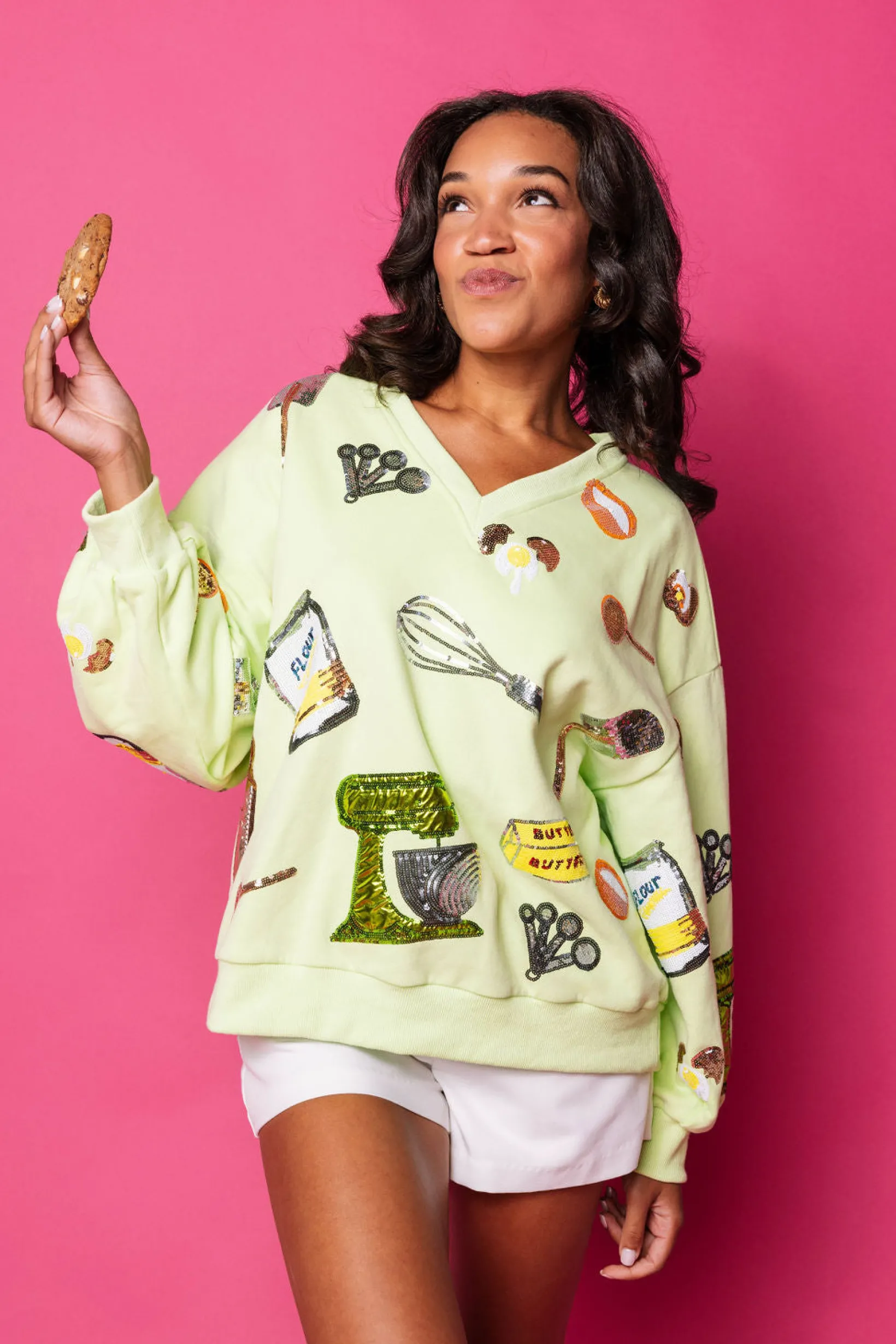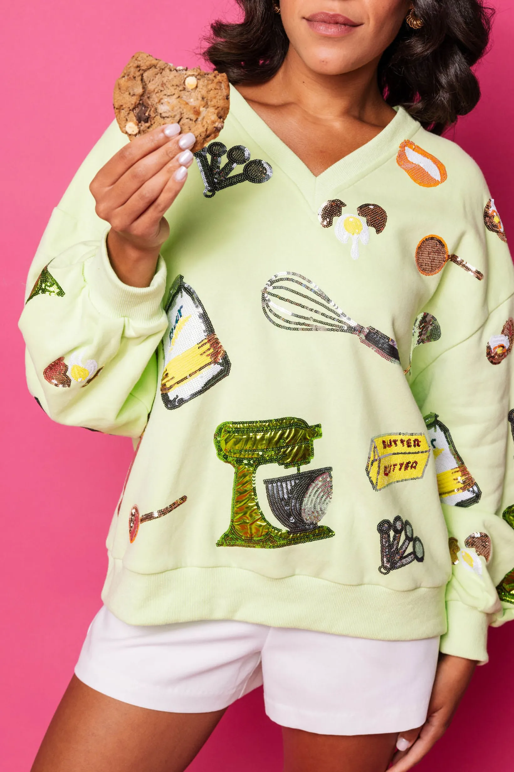 Indulge your passion for baking in our Neon Green Baking Icon V Neck Sweatshirt. This v-neck sweater is perfect for passionate bakers who want to show off their love of all things baking. With its bright neon green color and fun baking icons, this sweatshirt is a must-have for any baker’s wardrobe. Get ready to look stylish and show off your love for baking with this unique and comfy sweatshirt!