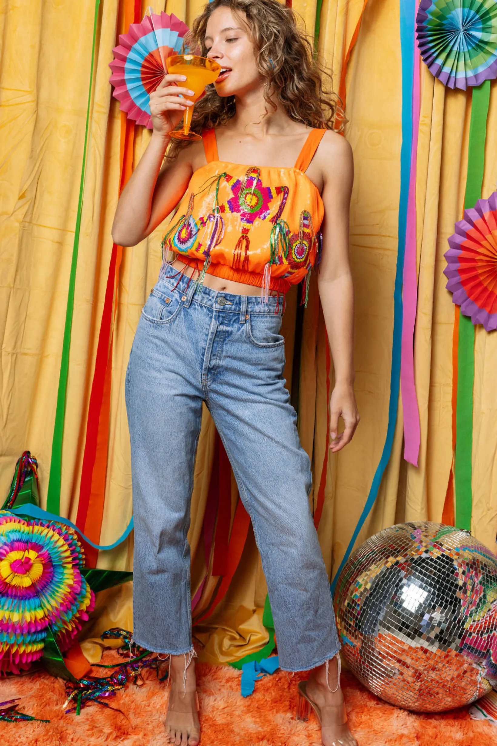 Unleash your playful side with this tank! This vibrant tank features a fun and quirky piñata design, perfect for adding a pop of color and humor to any outfit. Get ready to turn heads and have a good time in this unique tank. (Piñata stick not included!)🍬✨