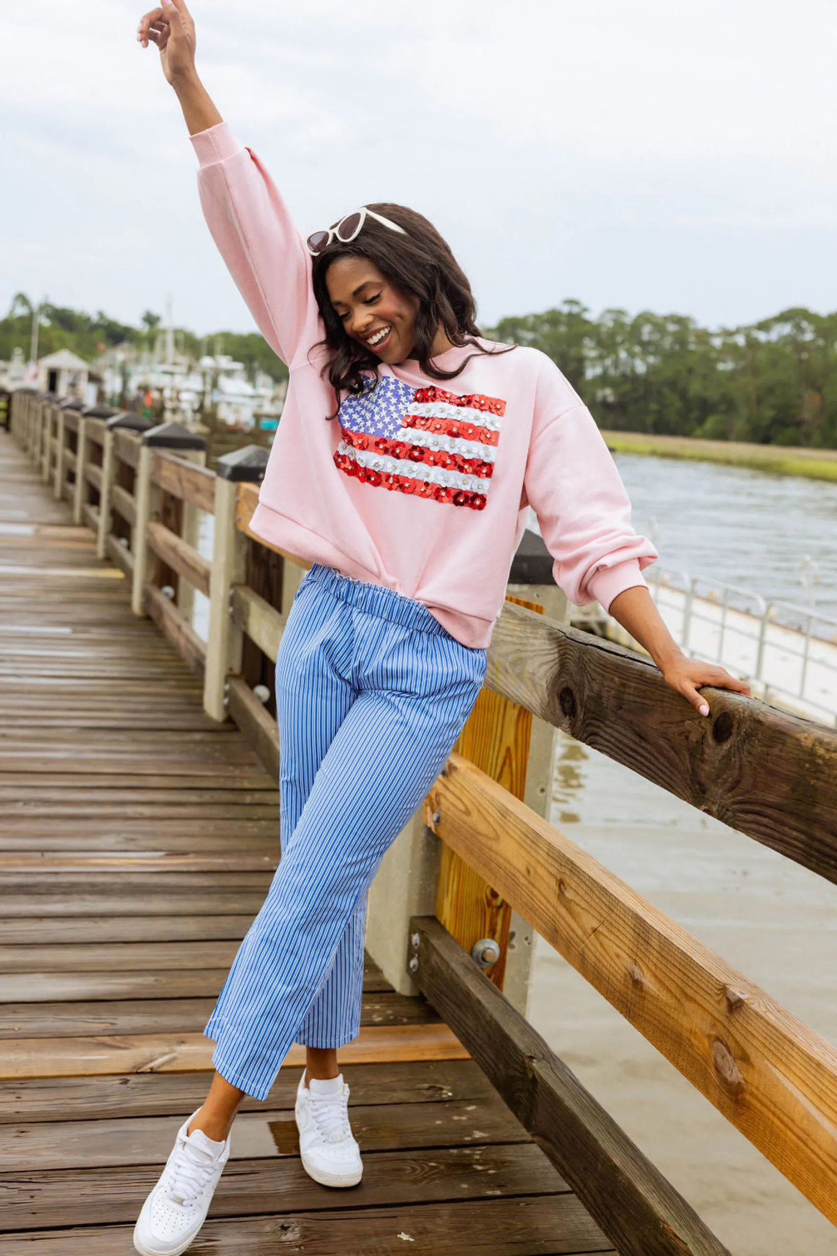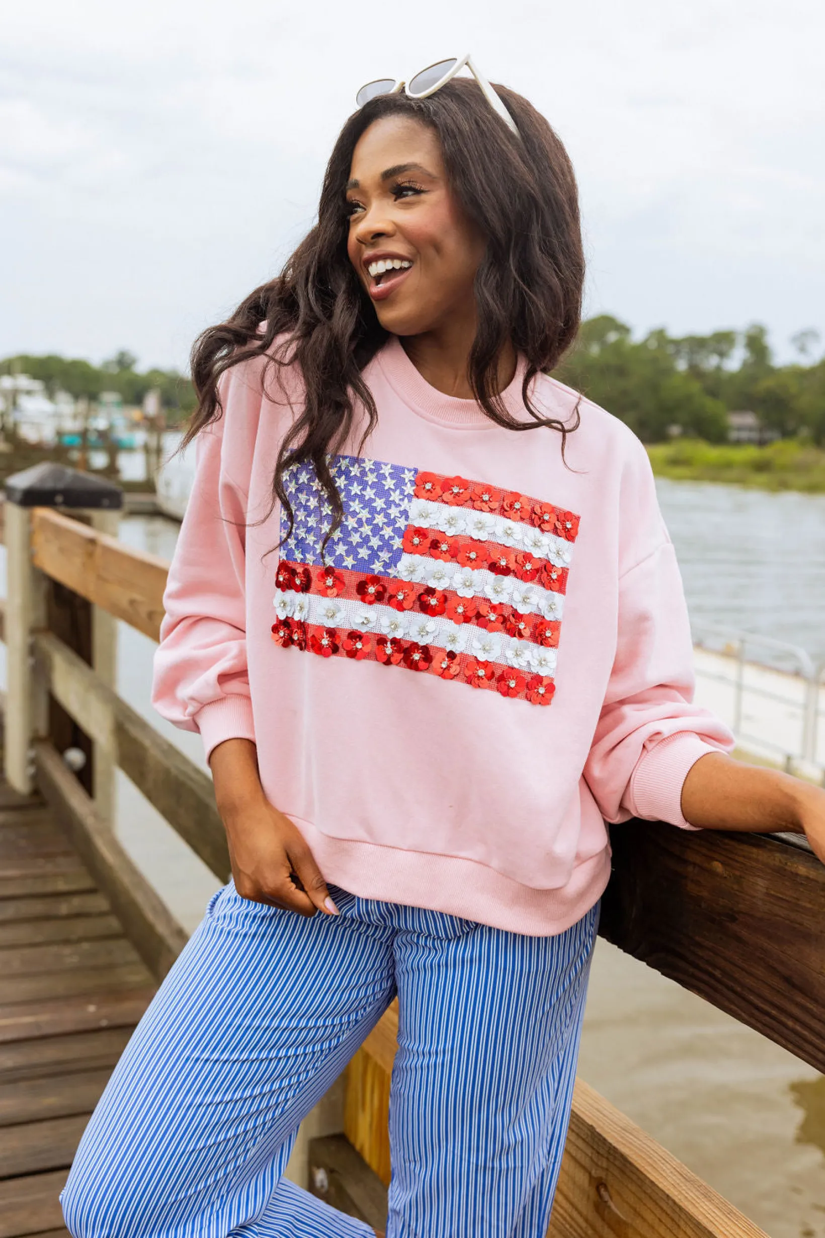 Our classic sweatshirt with a boho twist, this long sleeve top features a balloon sleeve with an extra roomy fit. Complete with an American flag design made out of flower embellishments. Rock it at your next backyard BBQ or when you’re feeling extra festive. USA! USA!πΊπΈπ