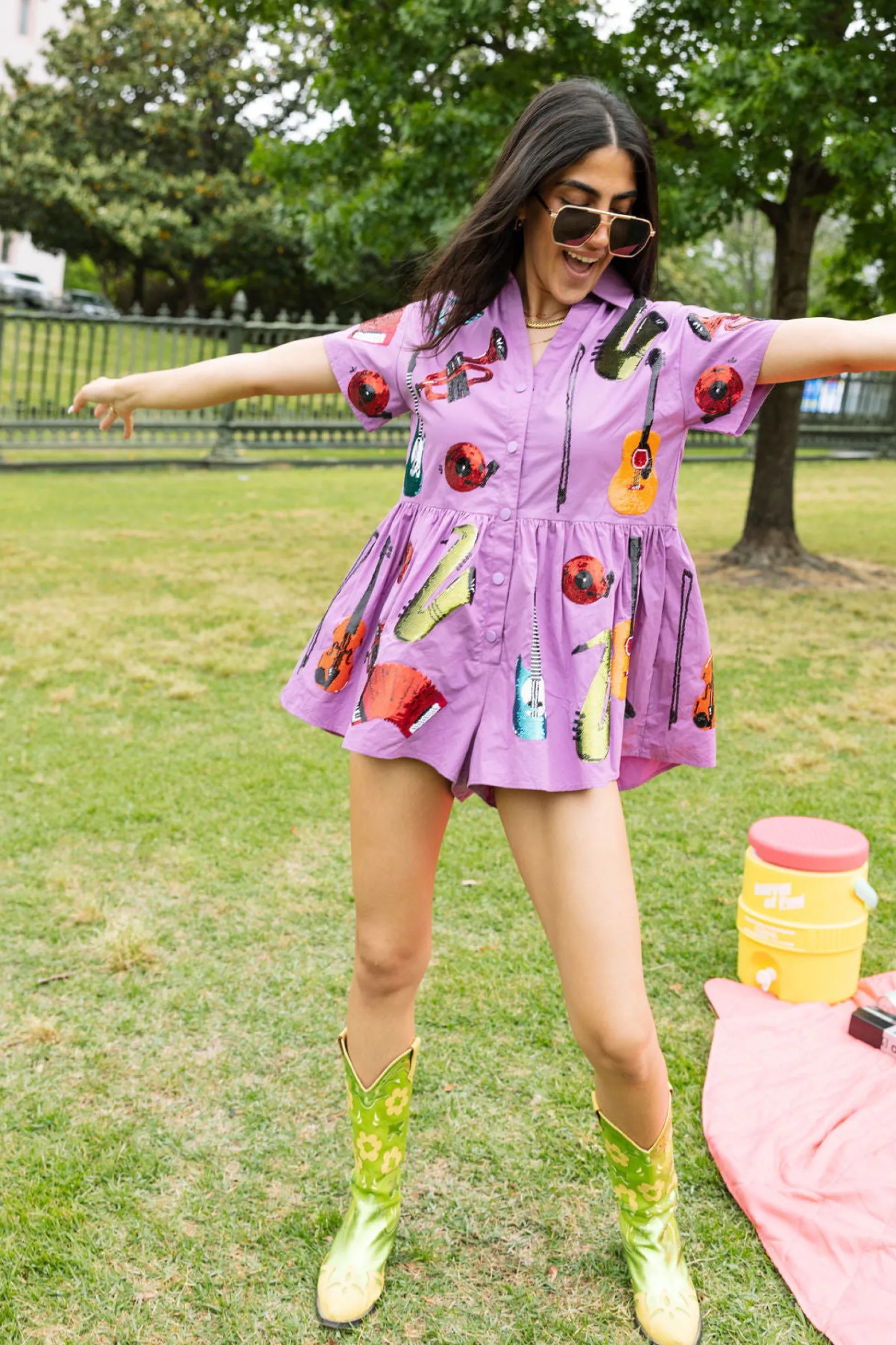 The QOS romper features flowy shorts and a cinched high waist, all in a light-weight cotton material. Get ready to rock and roll in style!🎸🎶