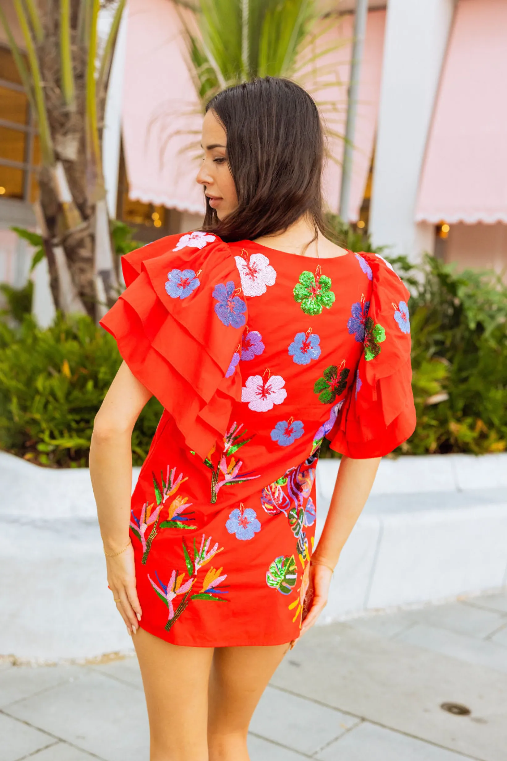 It’s our go-to sundress with its tiered skirt and ruffled collar details. Featuring a paradise icon design its perfect for any occasion. you’ll feel like you’re in paradise every time you wear it! 🏝️🔆