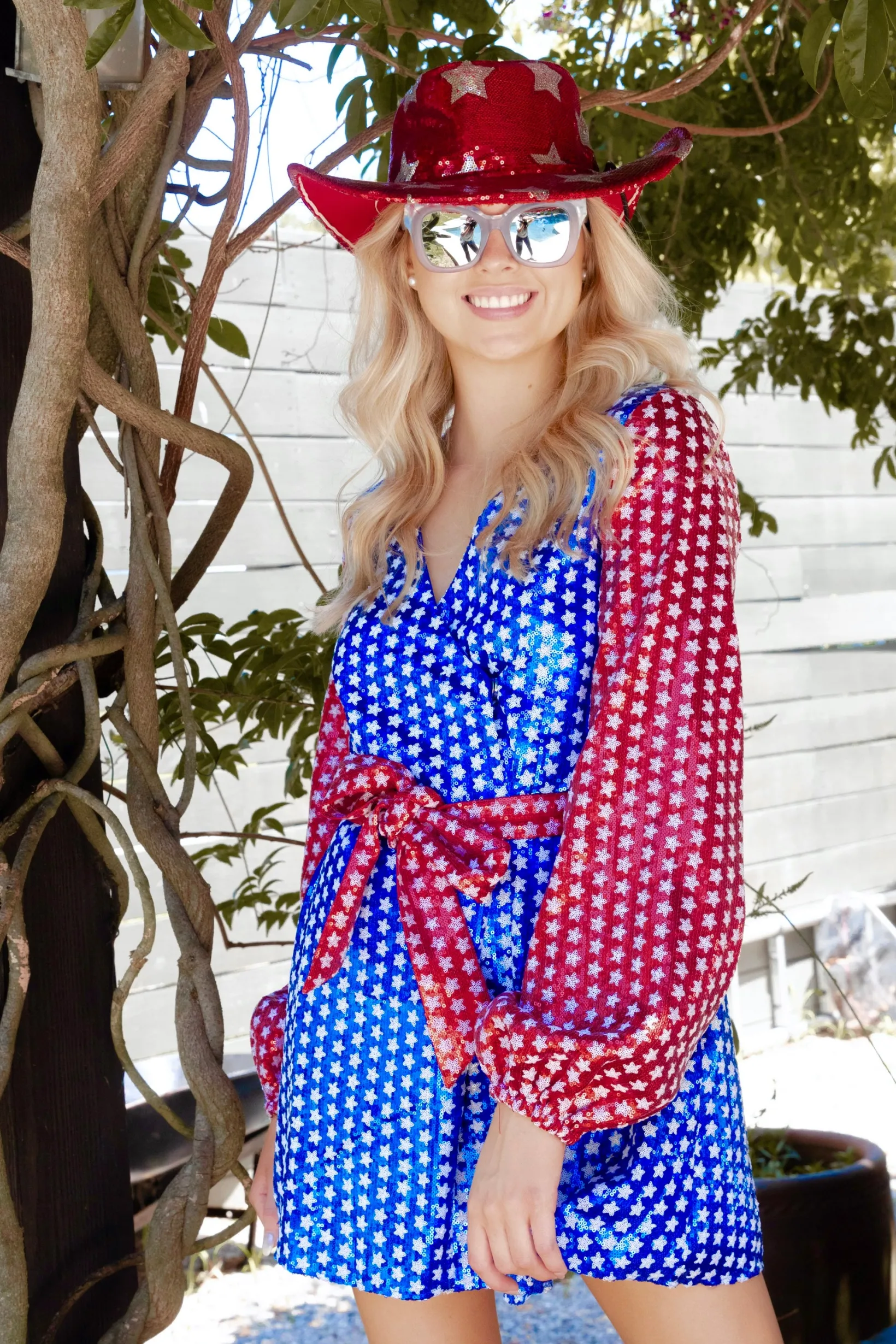 Be the star of the Fourth in our full sequin Red, White, & Blue Star Dress! This eye-catching dress will make you stand out at any Independence Day celebration. Perfect for those who love to make a statement. (Warning: prepare for all eyes on you!)🌟🇺🇸