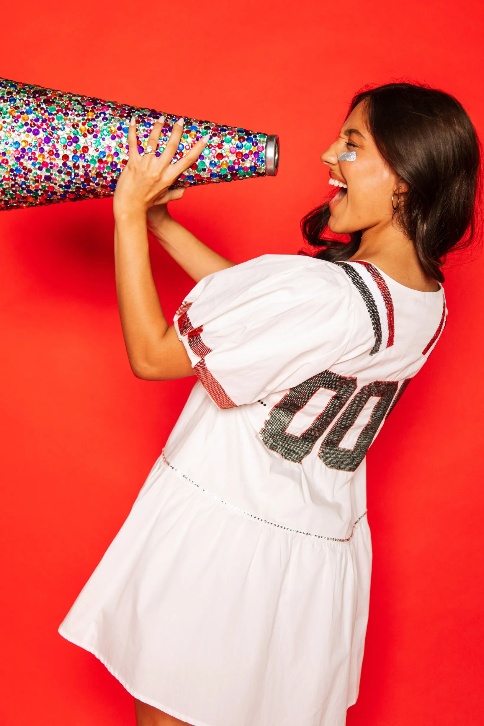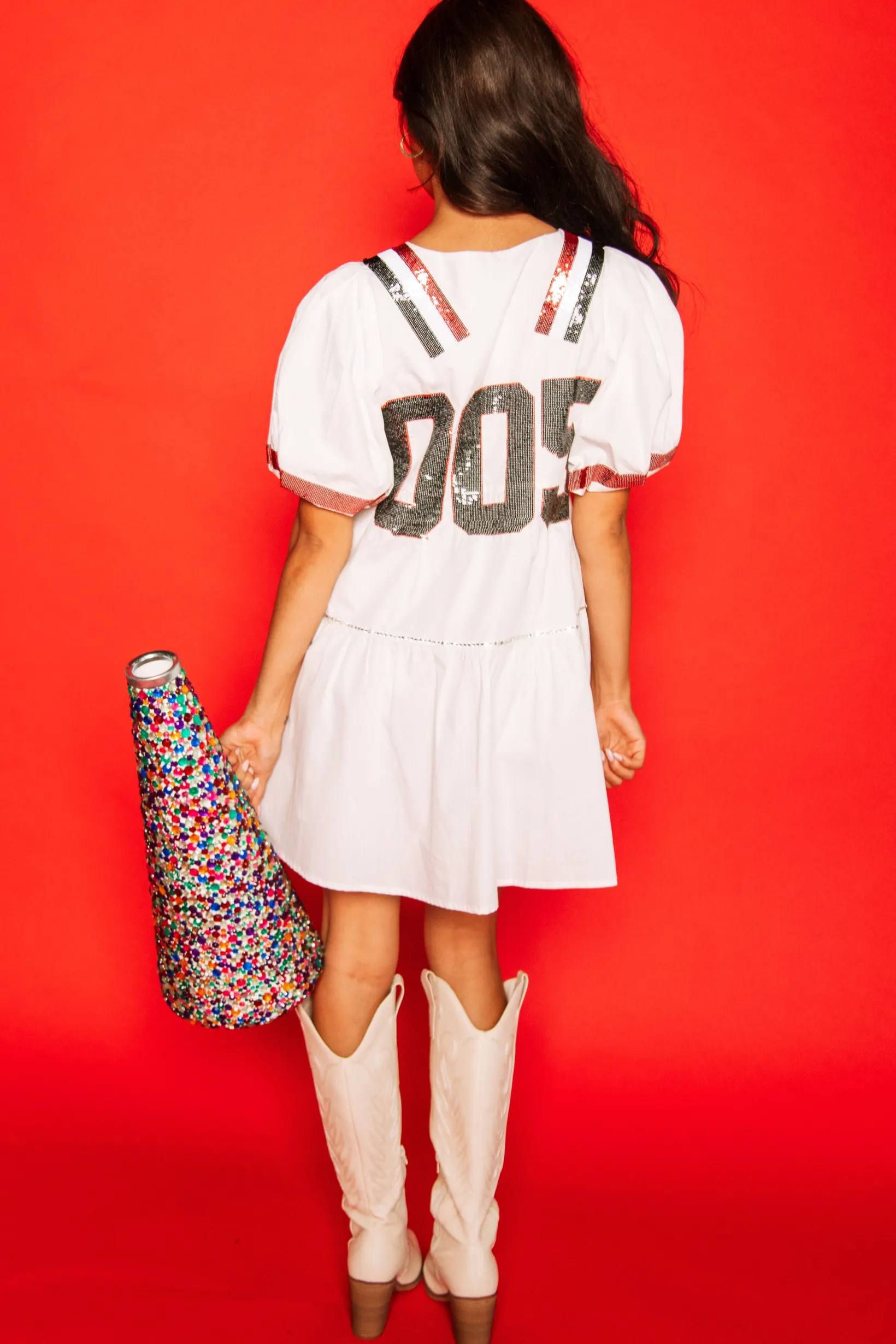 White, Black/Red Poof Sleeve QOS Jersey Dress