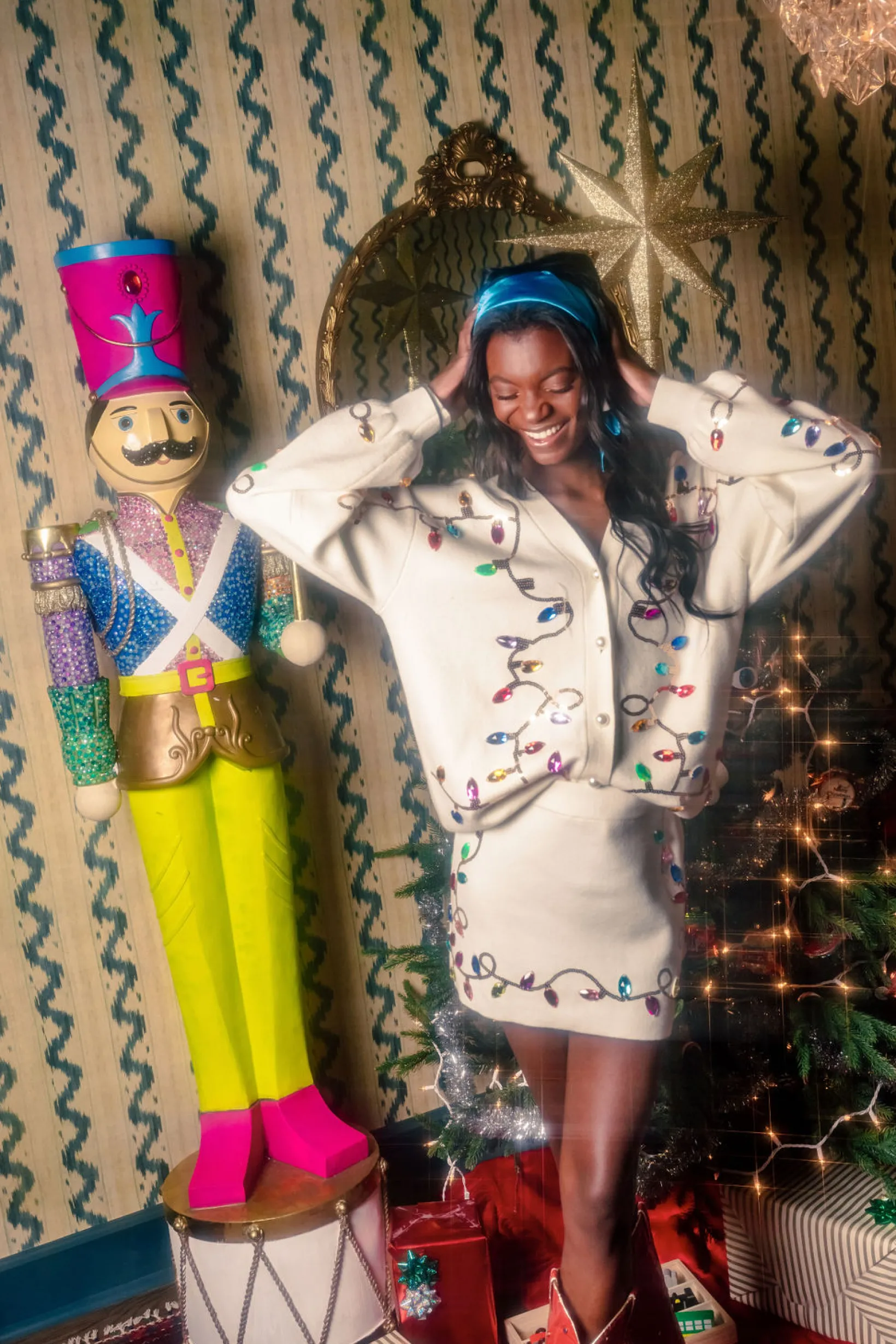 White Multi Jeweled Christmas Lights Skirt