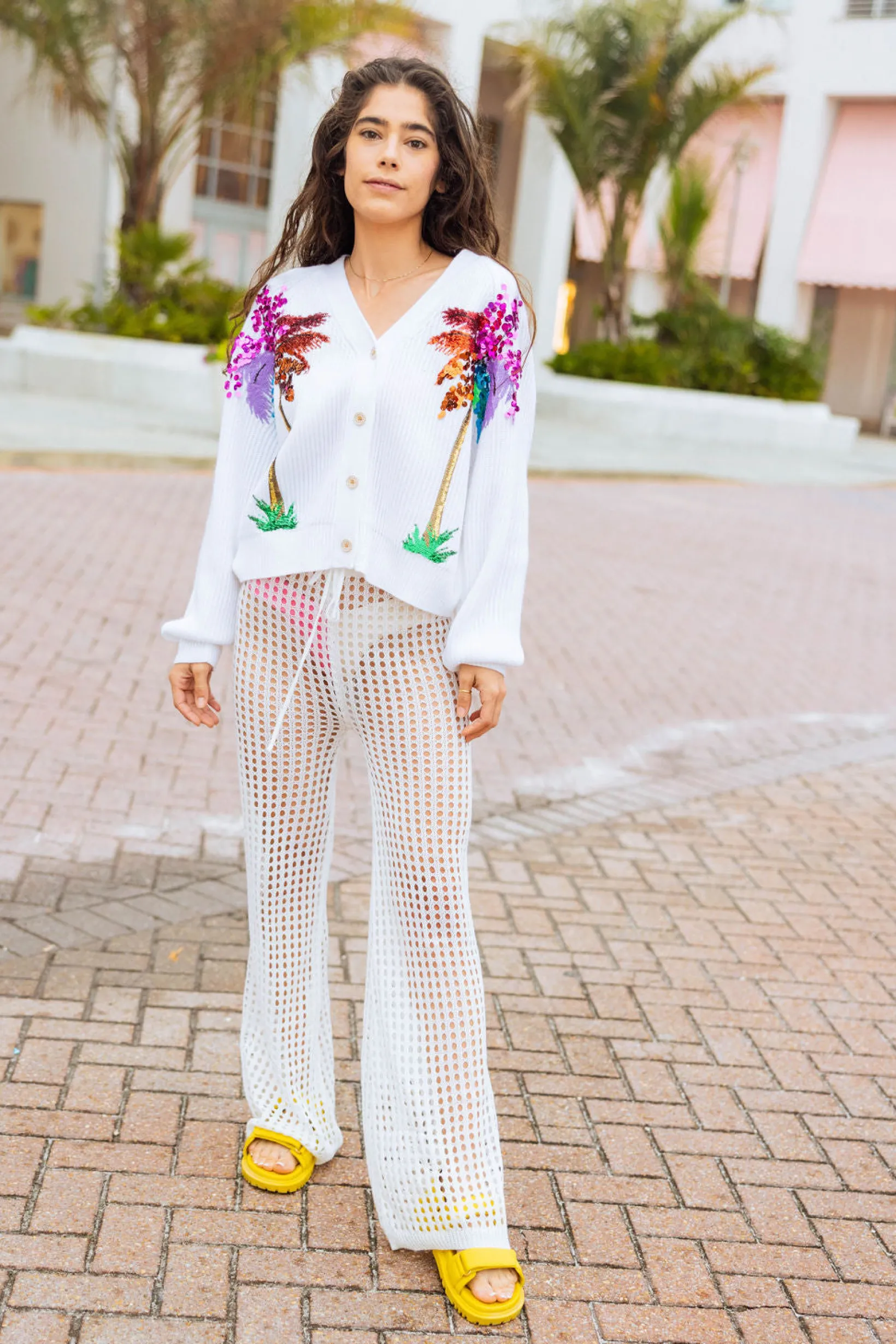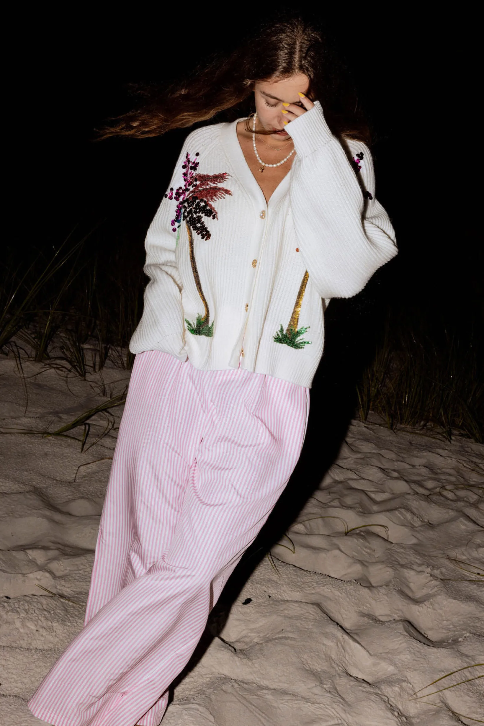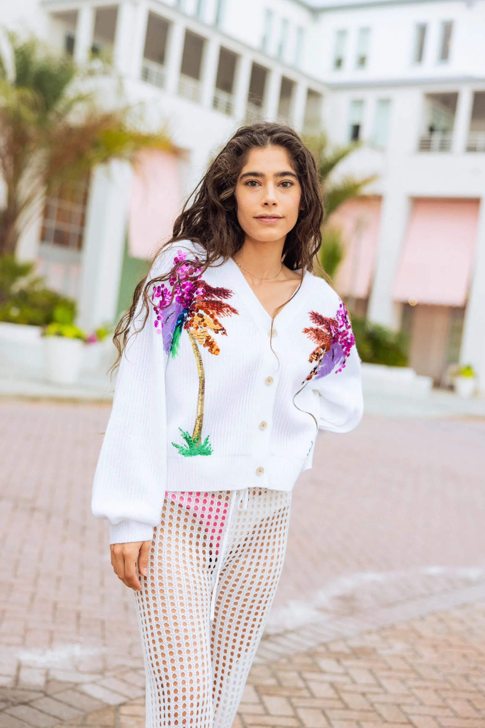 Our comfy, cozy cardigans, complete with a sequin palm tree design. it’s a must-have for any fashion-forward wardrobe. (Palm-tastic!)🌴🥥