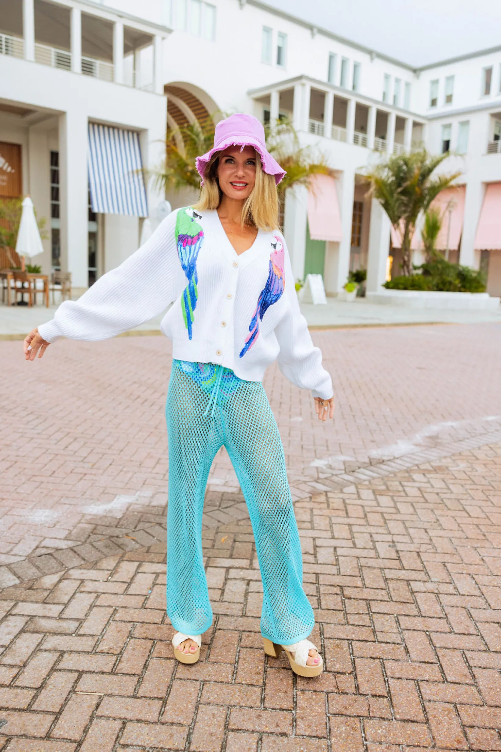 Our comfy, cozy cardigan complete with a sequin parrot design! (No parrots were harmed in the making of this cardigan.) 🦜🐚