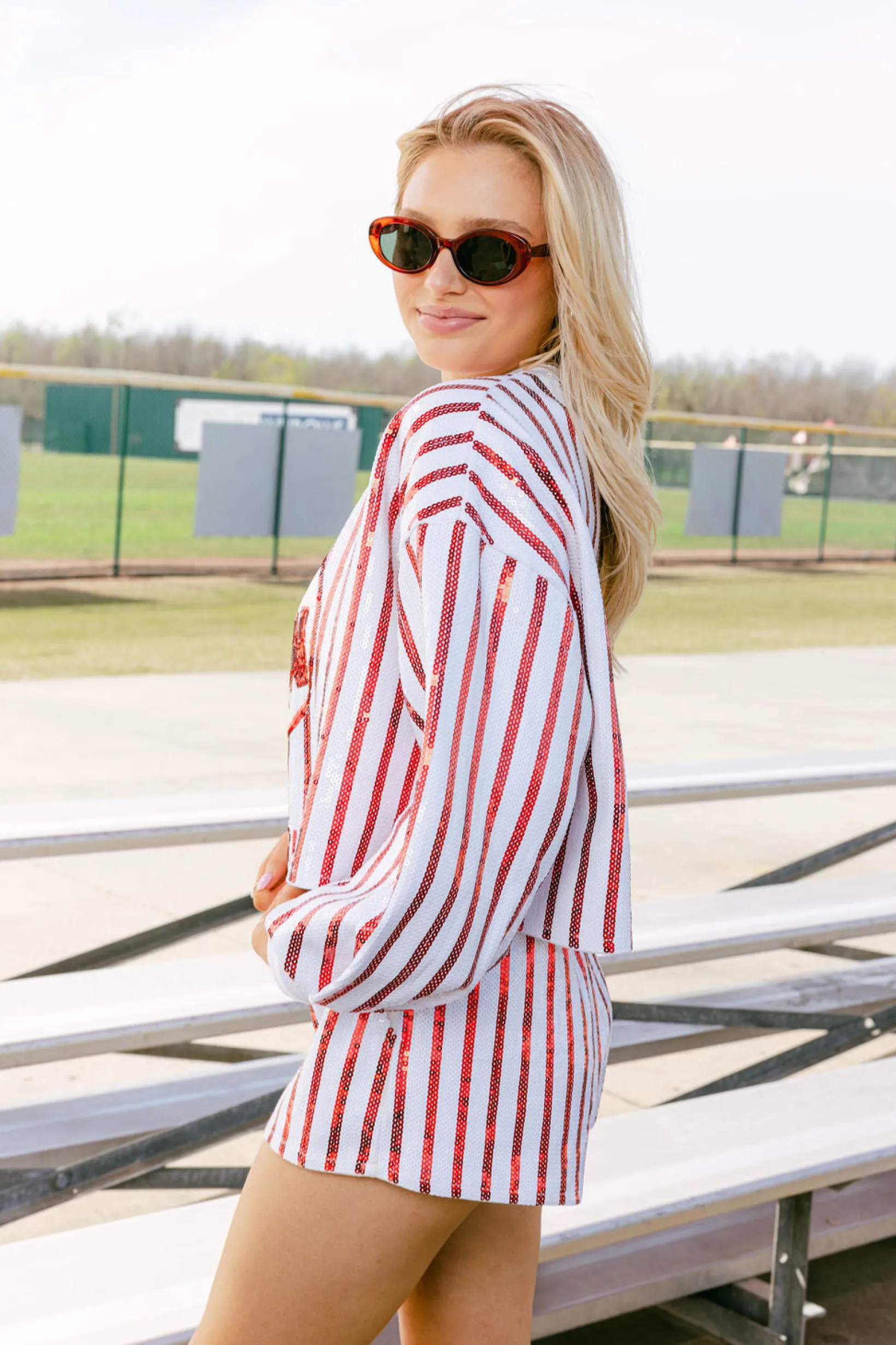 White & Red Full Sequin Stripe Short