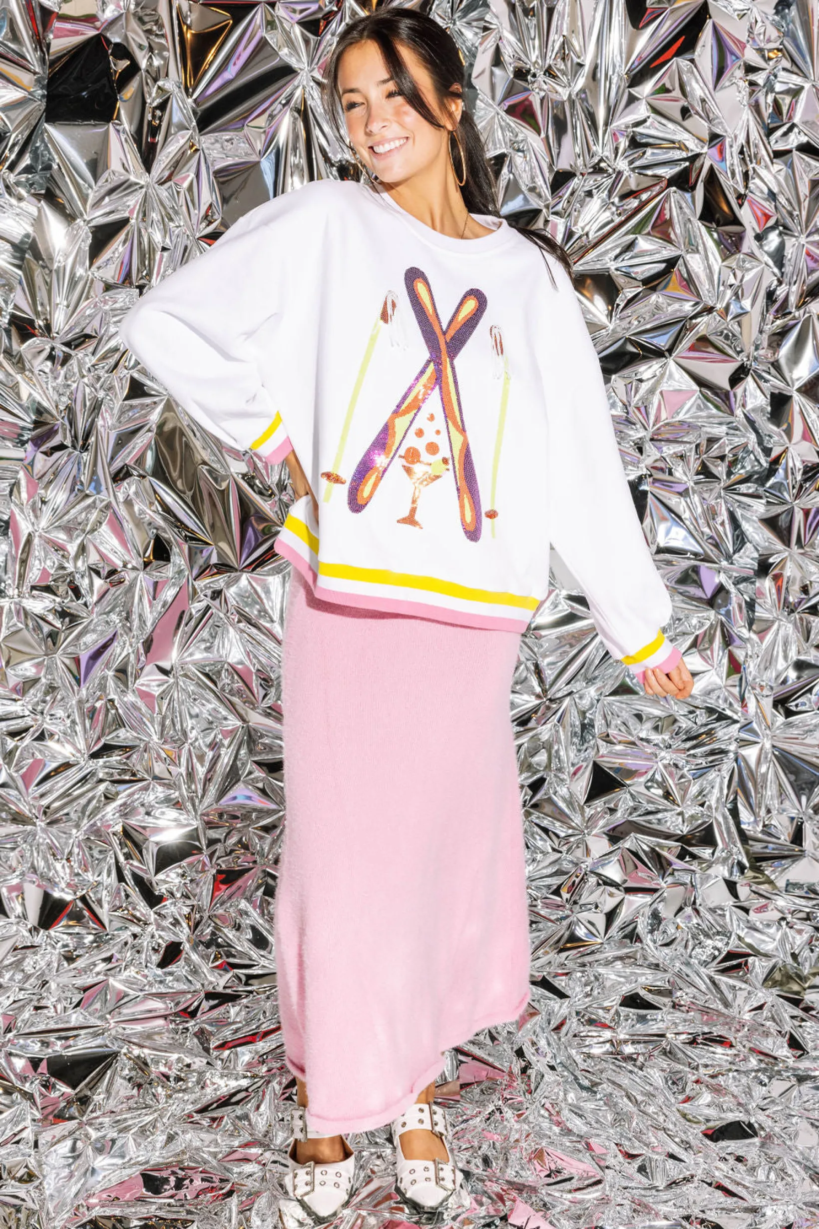 White Rhinestone Crossing Ski & Cocktail Sweatshirt
