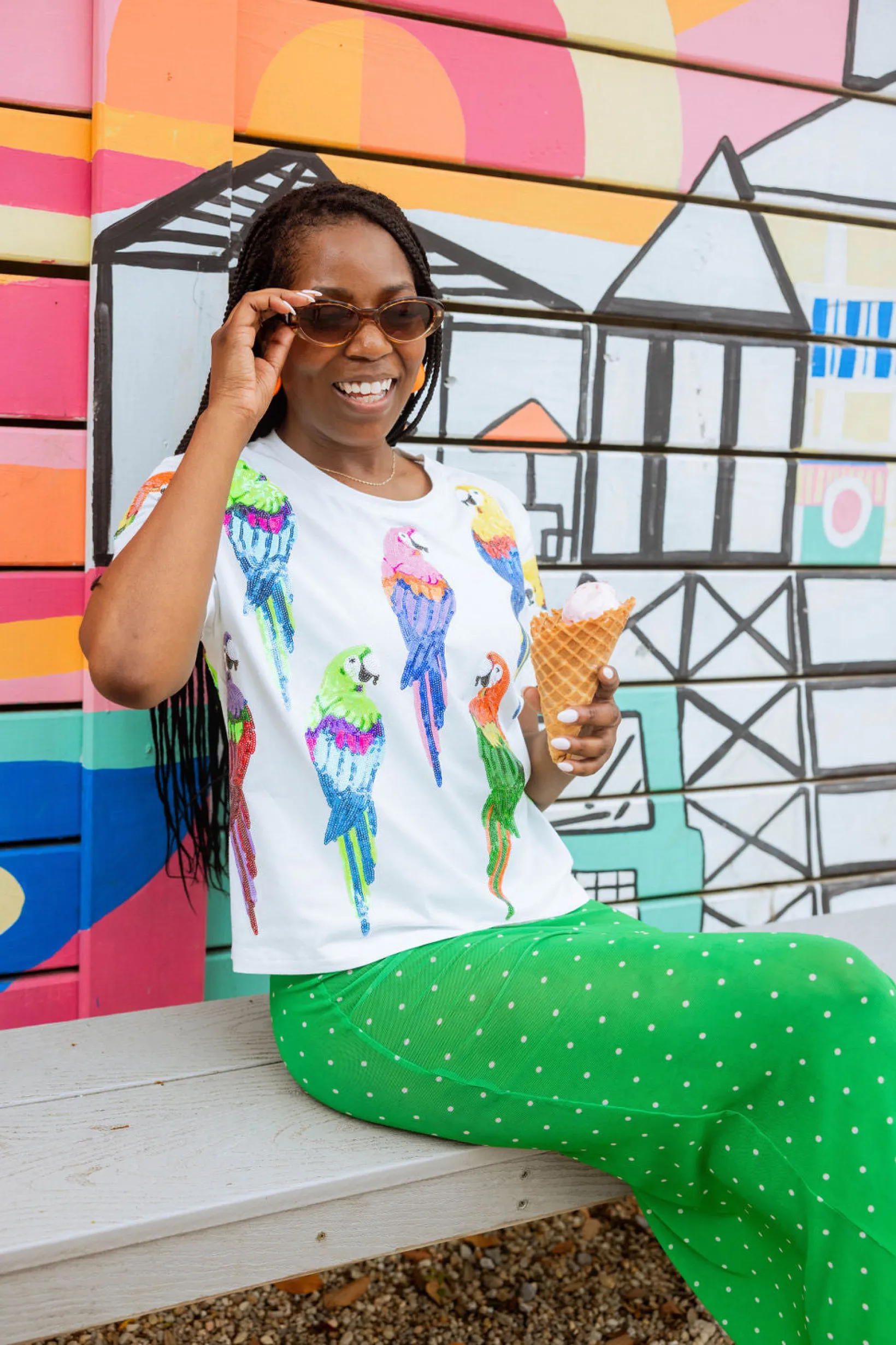This tee is a real tweet! Meet our classic tee, complete with a sequin parrot design.🦜🌴