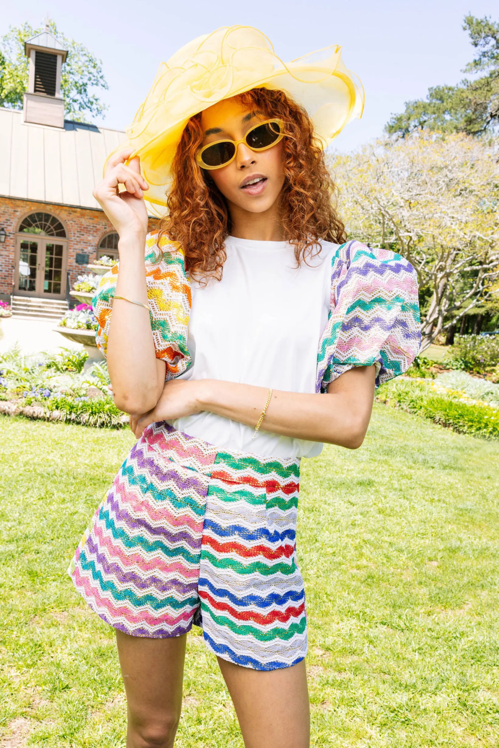 Stay comfy and cute in our White Tee with Crochet Sleeves! Show off your playful side with the Crochet puff sleeves that will take your style to the next level! Complete the look with our Crochet Shorts or Skort for a effortlessly chic outfit.