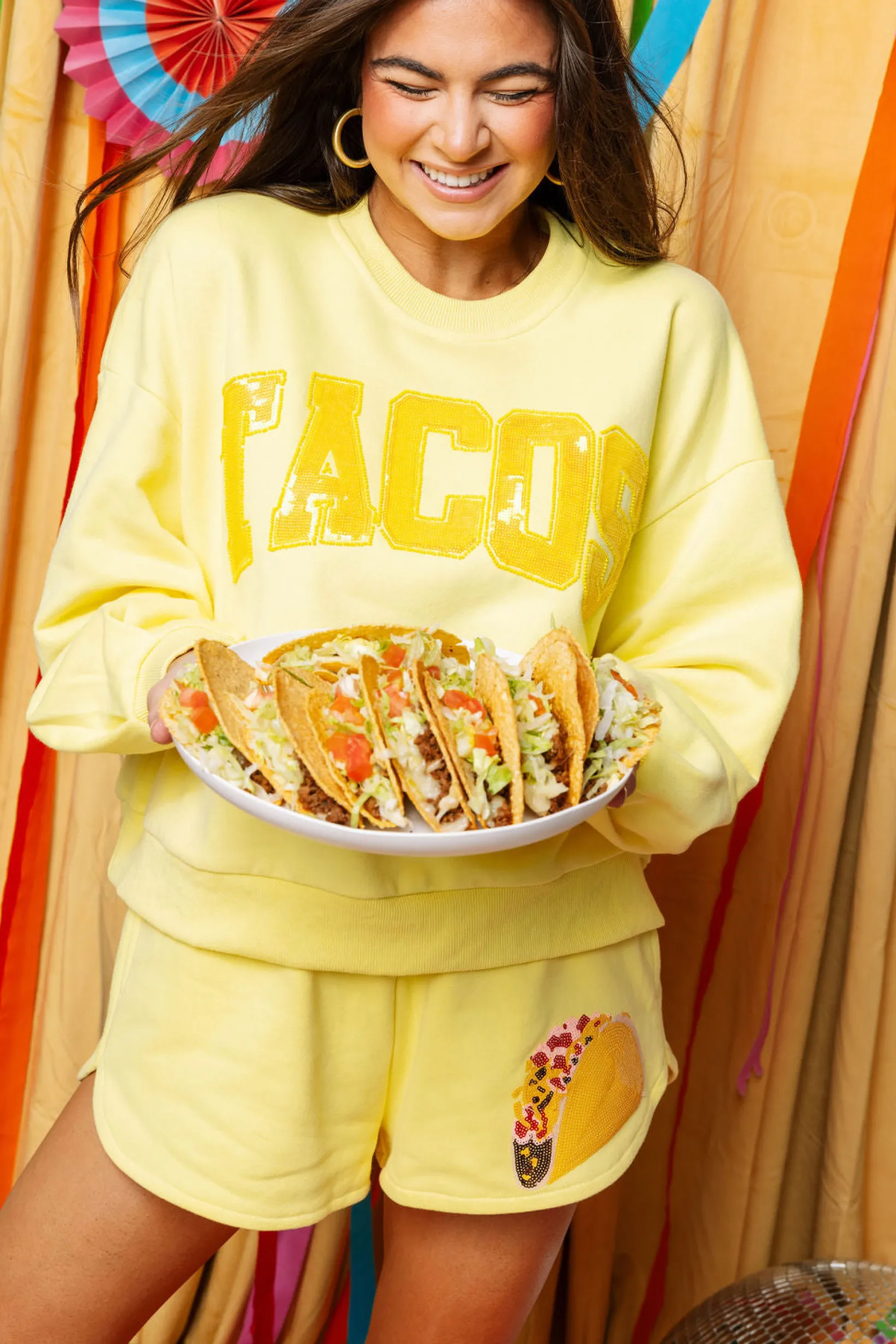 Meet our classic sweatshirt fit- Queen of Taco Edition. With a comfy, oversized fit and bedazzled with “Tacos”. Perfect for satisfying your cravings for both comfort and style. Don’t be a “shell”out, grab yours today! 🌮💛